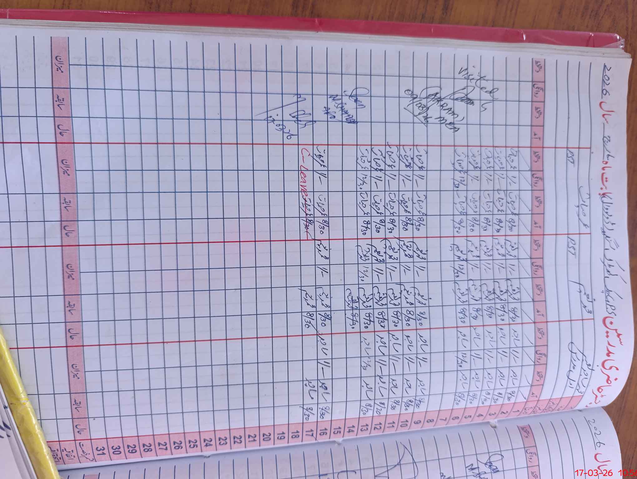 | CNIC | Full Name | Designation | R/C | Absence During Last Calender Month |