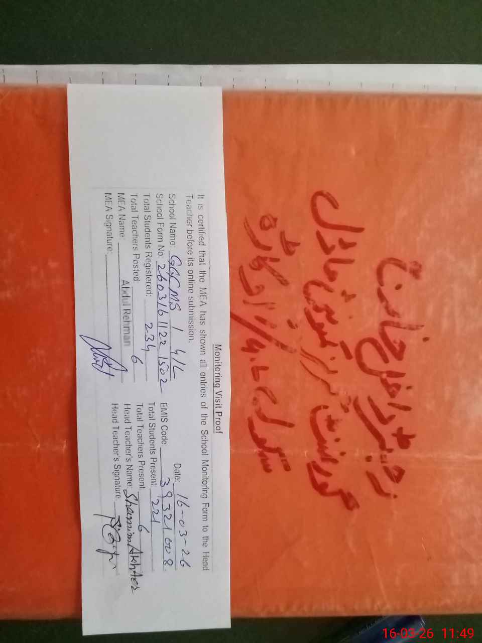 | Certified that this School was Inspected by the Undersigned MEA/DMO Today and the Information Stated Above is as Per Record. | |||||