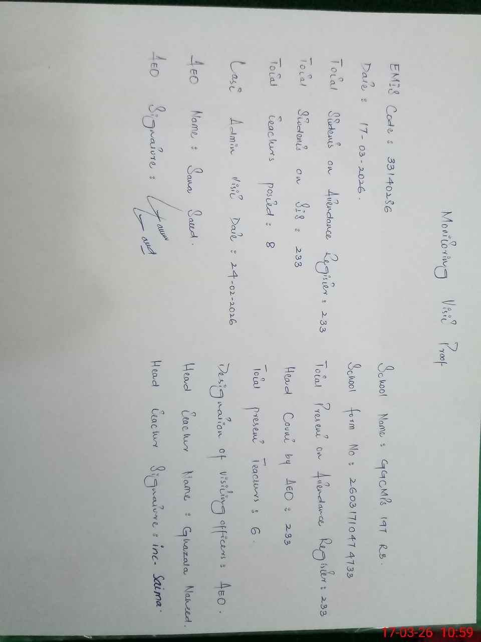 | Monitoring Date: 17-03-2026 | Start Time: 17-03-2026 10:31 AM | End Time: 17-03-2026 10:59 AM | Name of MEA: SA**** SA**** | |