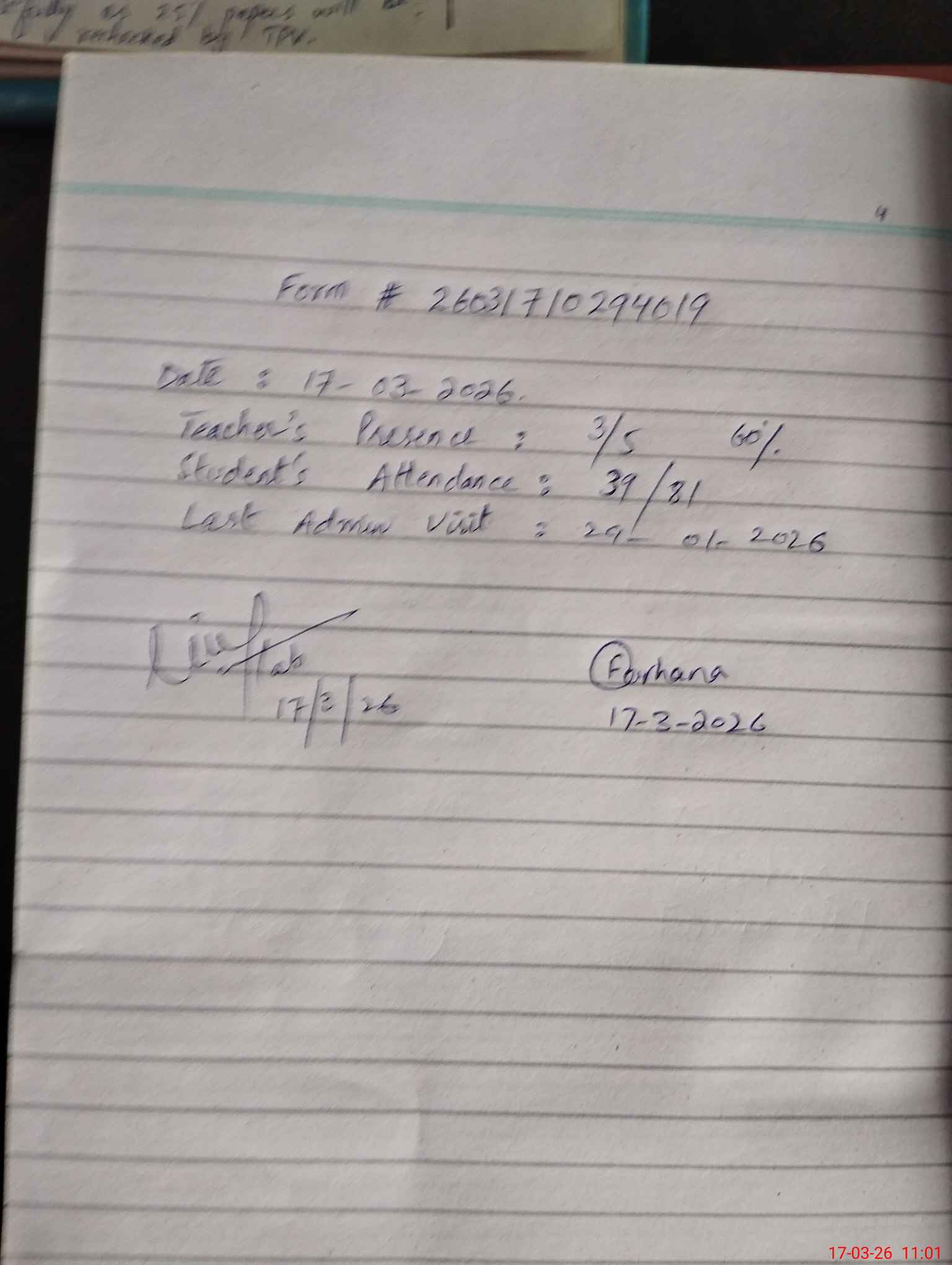 | Monitoring Date: 17-03-2026 | Start Time: 17-03-2026 10:54 AM | End Time: 17-03-2026 11:01 AM | Name of MEA: SA**** AF**** | |