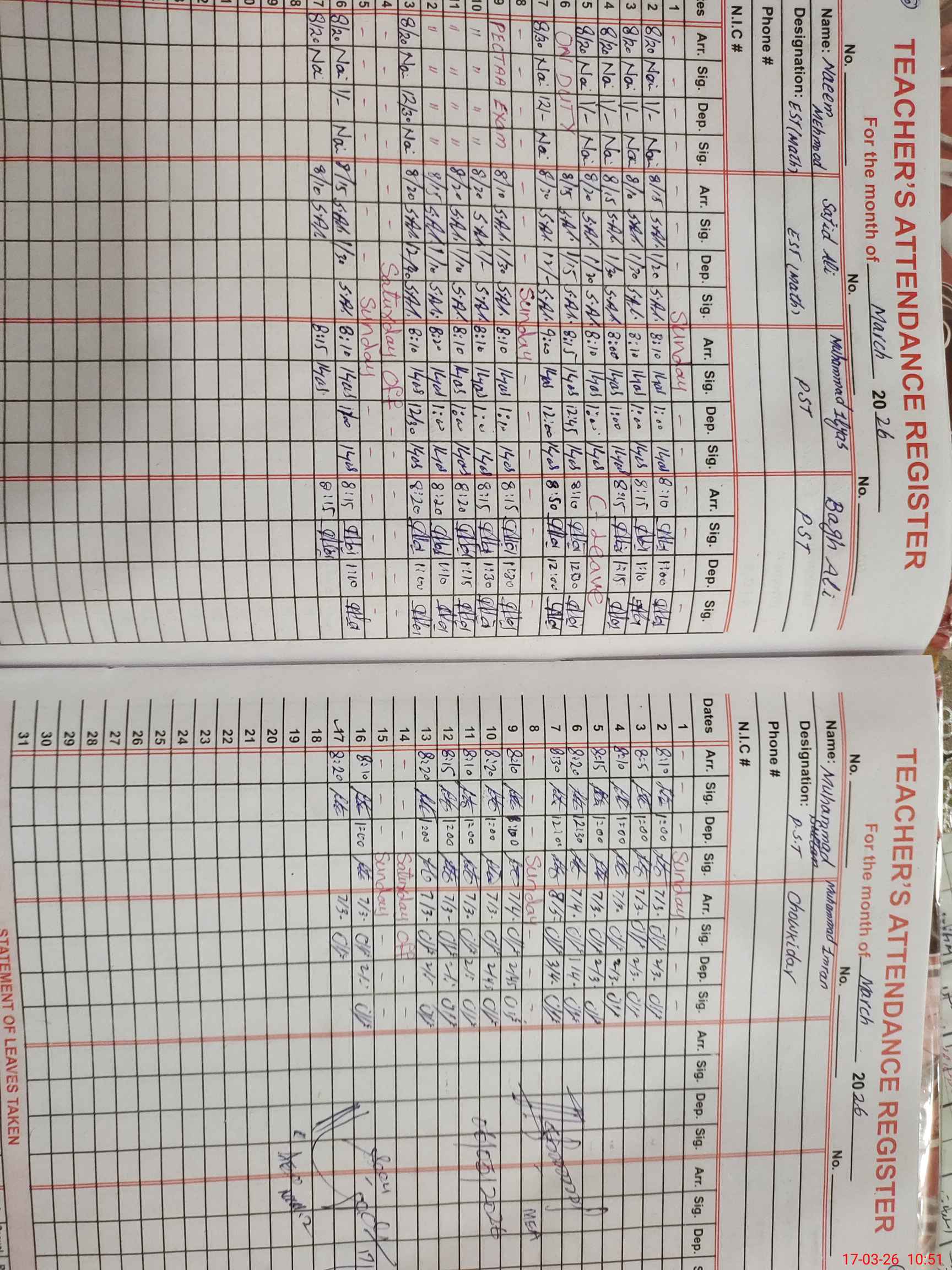 | Name: Ir**** Al**** Designation: (School Headmaster's/Headmistress's) SST (GENERAL) Phone/Cell Number: 03**** |