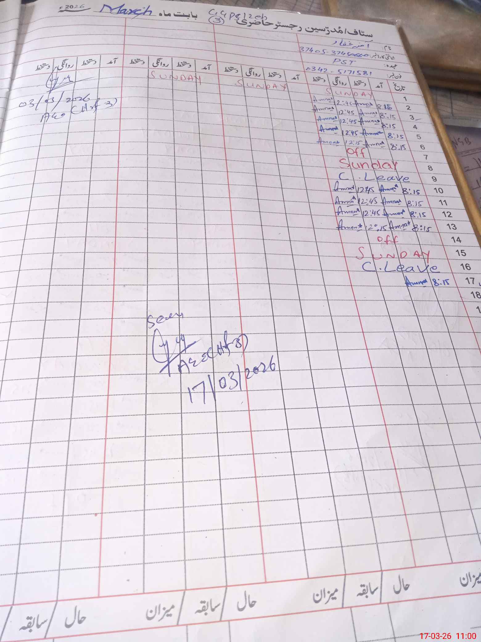 | Name: AM**** GH**** Designation: (School Headmaster's/Headmistress's) PST Phone/Cell Number: 03**** |