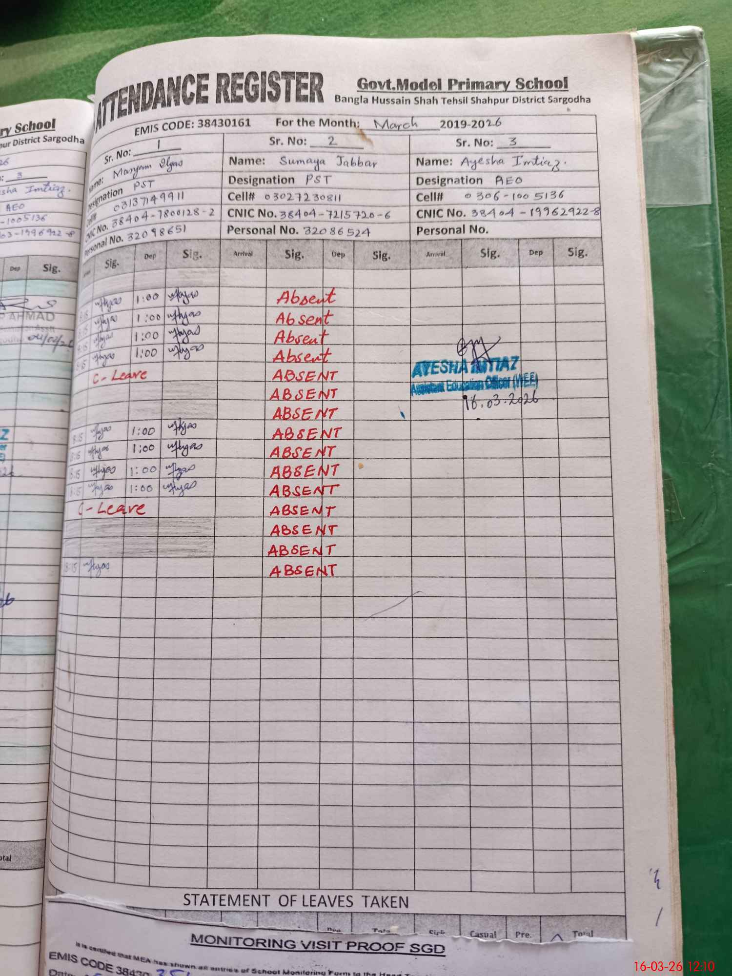 | 38**** | Su**** Ja**** | PST Science/Maths | Regular | 0 | 0 | 0 | 0 | 0 | 0 | 0 | 0 | 0 | Absent (Un-Authorized) |