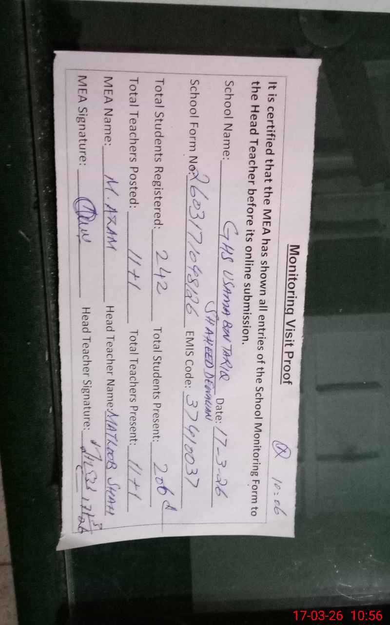 | EMIS Code: 37410037 | Name of School: GHS USAMA BIN TARIQ SHAHEED DEWALIAN | |||