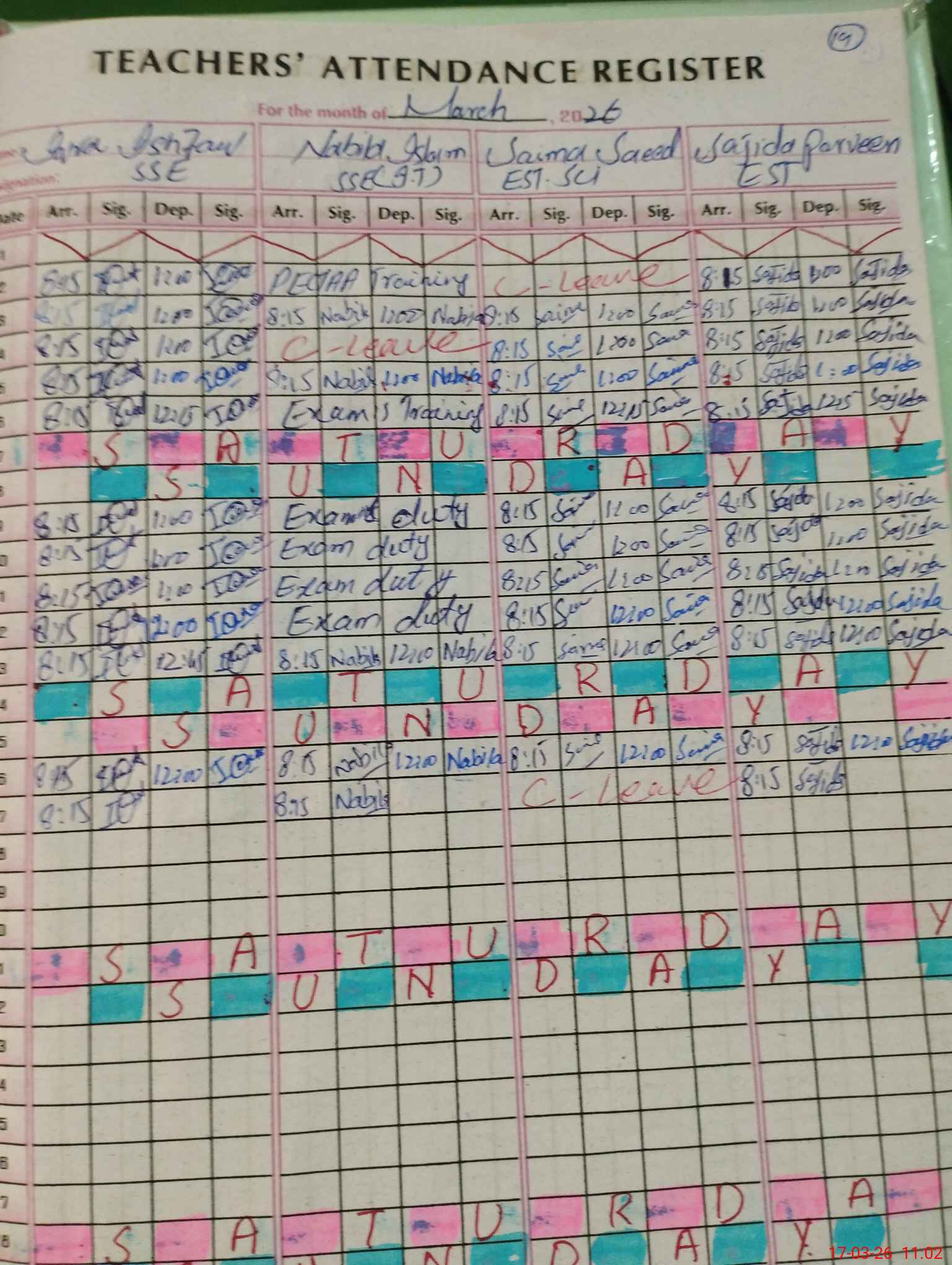 | Leave | Duty | Absent | Maternity | Medical | Ex- Pak |