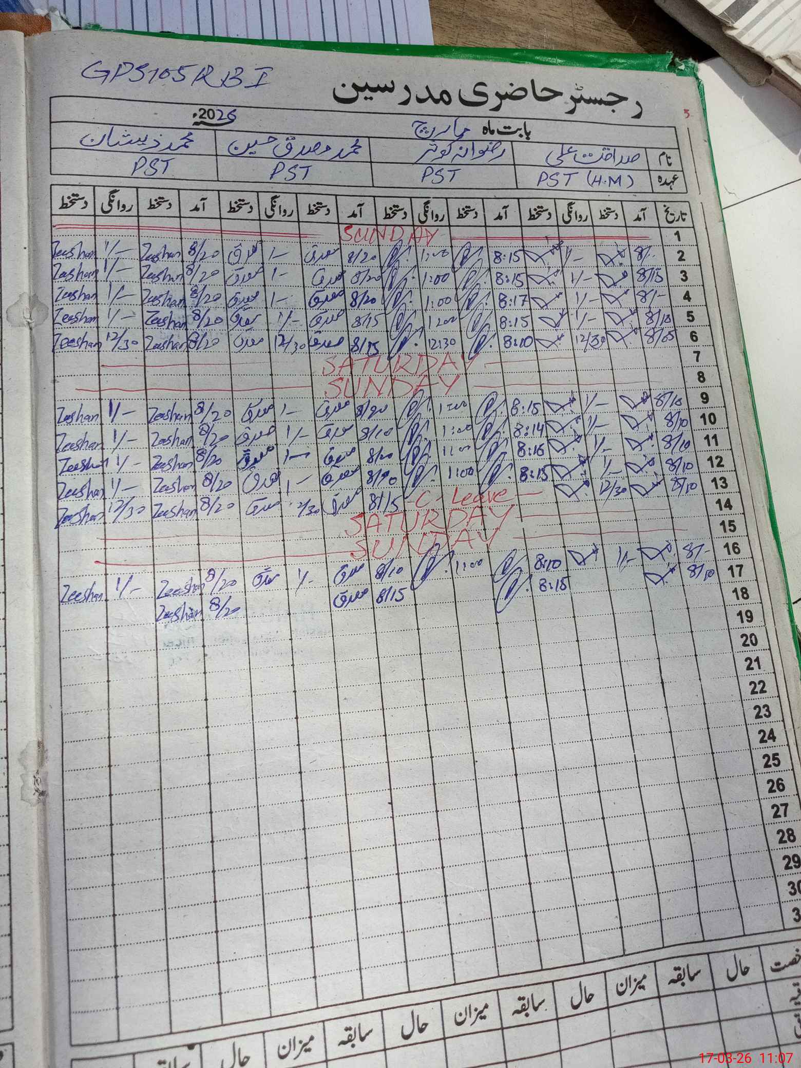 | Name: SA**** AL**** Designation: (School Headmaster's/Headmistress's) PST/PTC/JV Phone/Cell Number: 03**** |