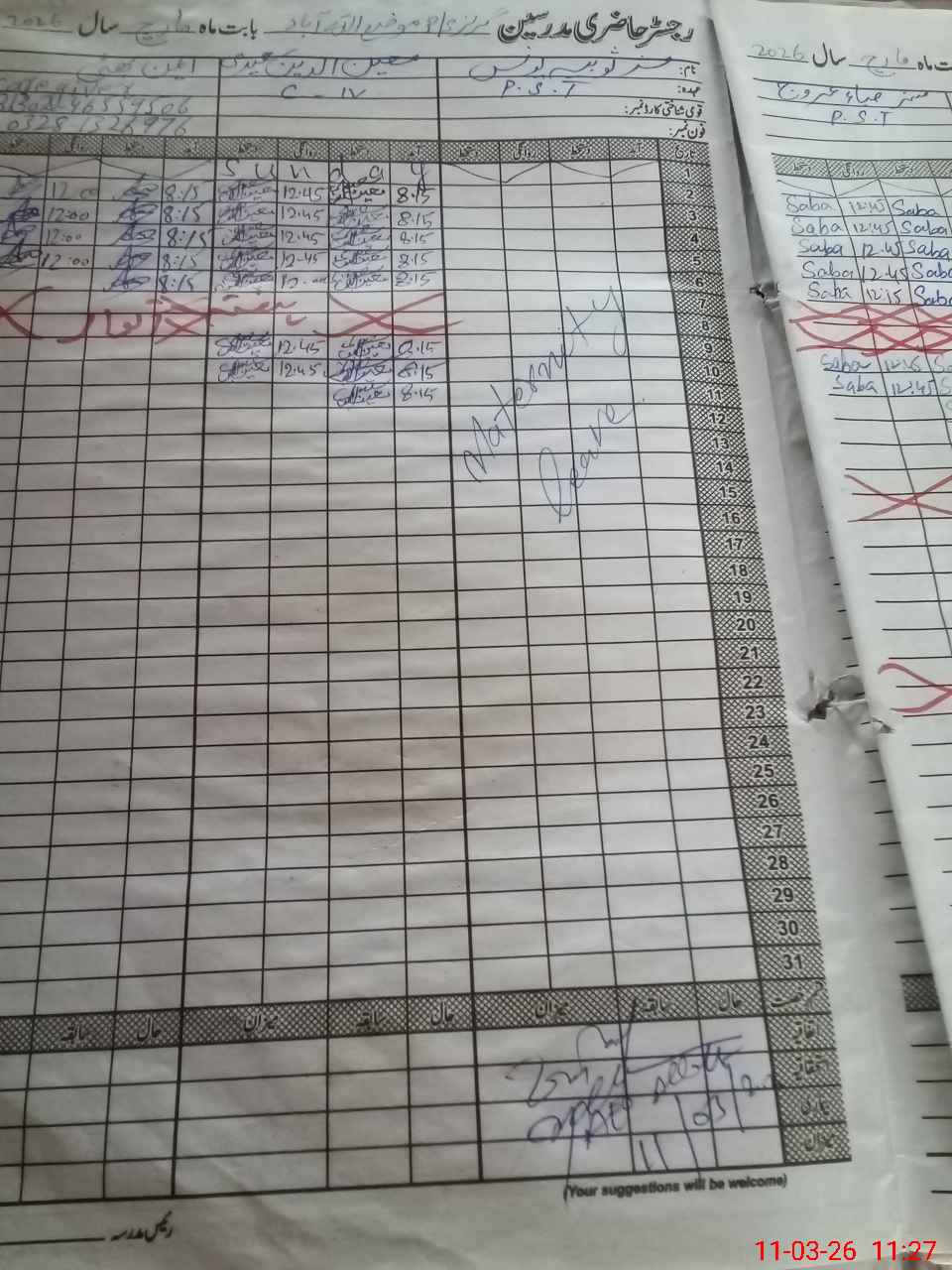 | Name: SU**** BA**** Designation: (School Headmaster's/Headmistress's) PST/PTC/JV Phone/Cell Number: 03**** |