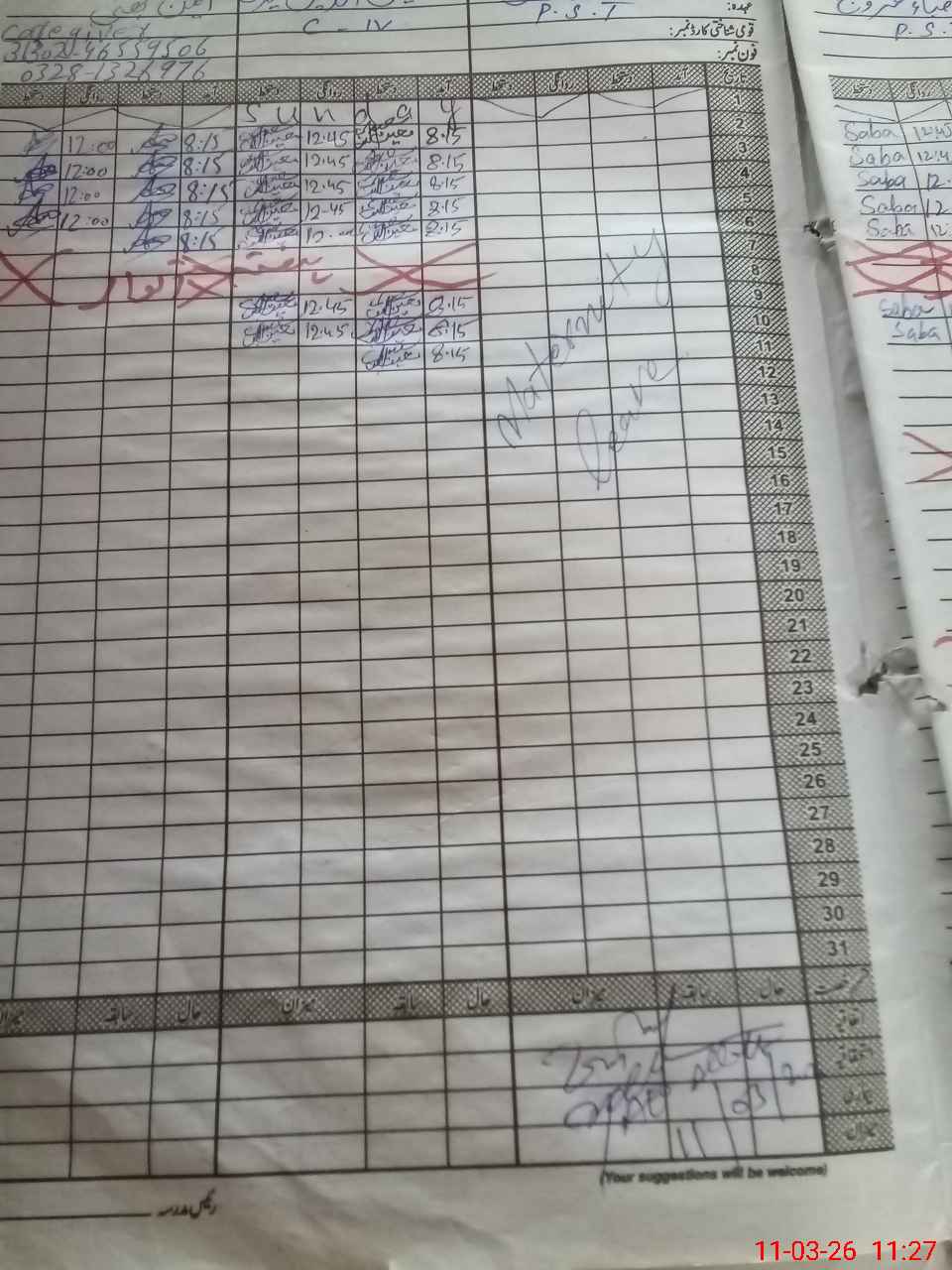 | Leave | Duty | Absent | Maternity | Medical | Ex- Pak |