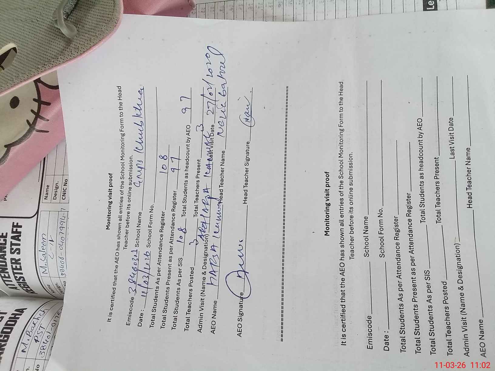 | Attendance Register | Head Teacher | MEA with School | Visit Proof |