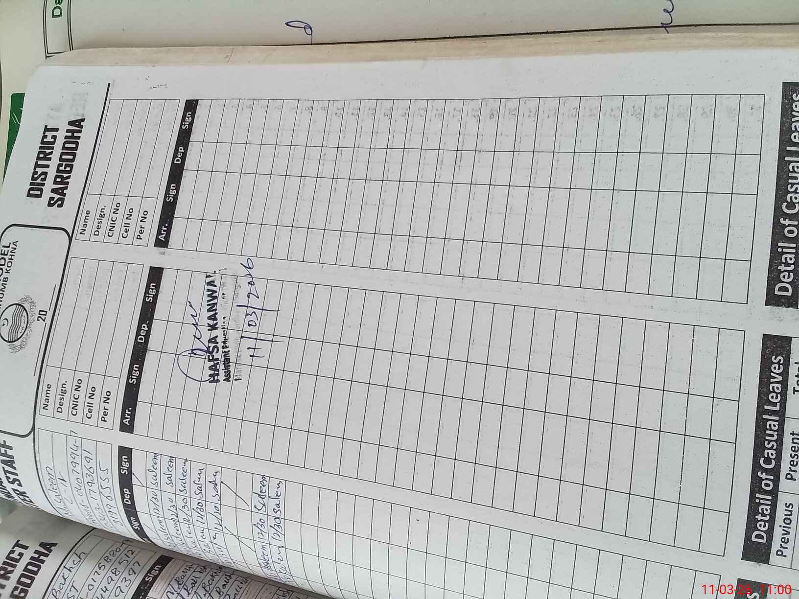 | CNIC | Full Name | Designation | R/C | Absence during last cal. month |