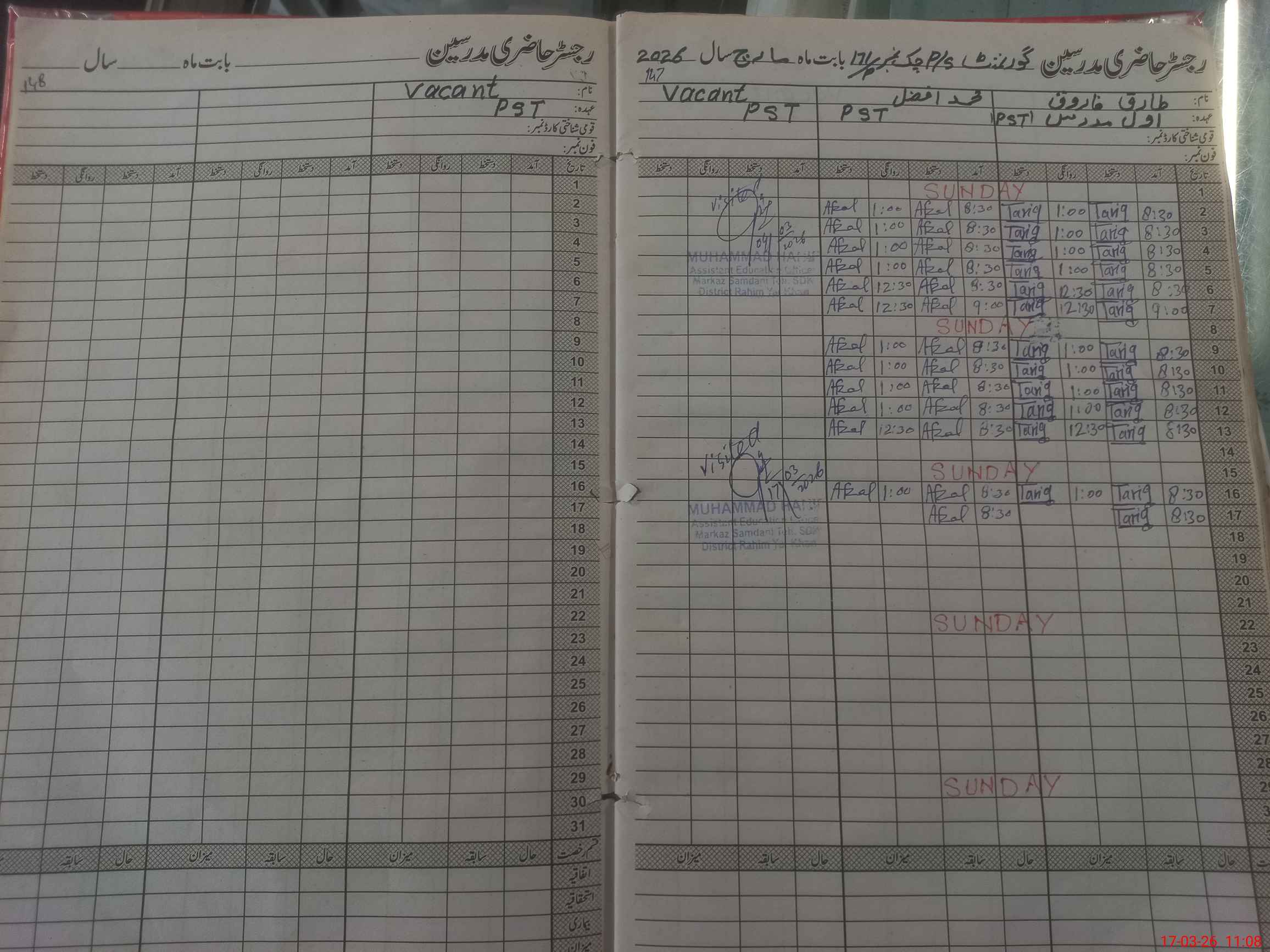 | Name: Ta**** Fa**** Designation: (School Headmaster's/Headmistress's) PST Phone/Cell Number: 03**** |