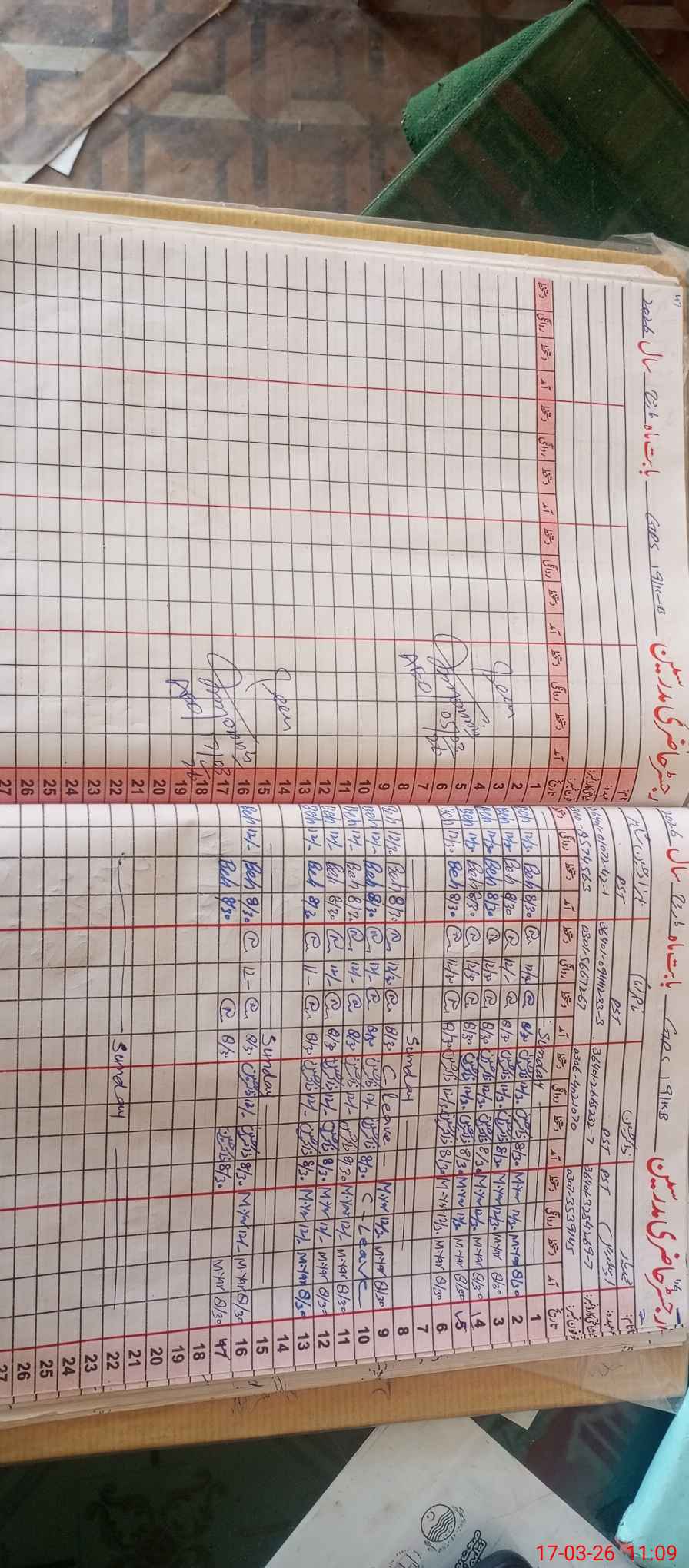 | CNIC | Full Name | Designation | R/C | Absence During Last Calender Month |