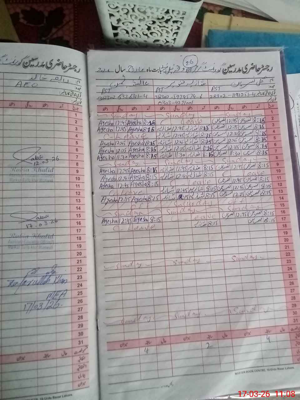| 38**** | Ay**** Sa**** Kh**** | PST Science/Maths | Regular | 0 | 0 | 0 | 0 | 0 | 0 | 0 | 0 | 0 | Casual |