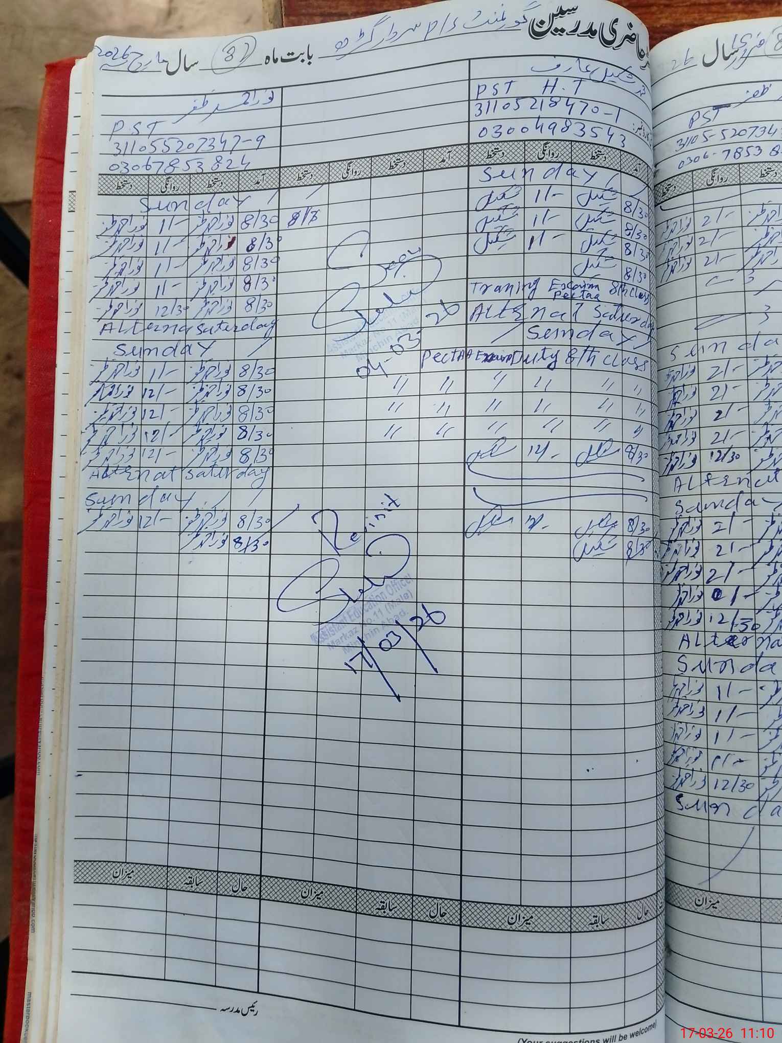 | Name: MU**** Sh**** Designation: (School Headmaster's/Headmistress's) PST Phone/Cell Number: 03**** |