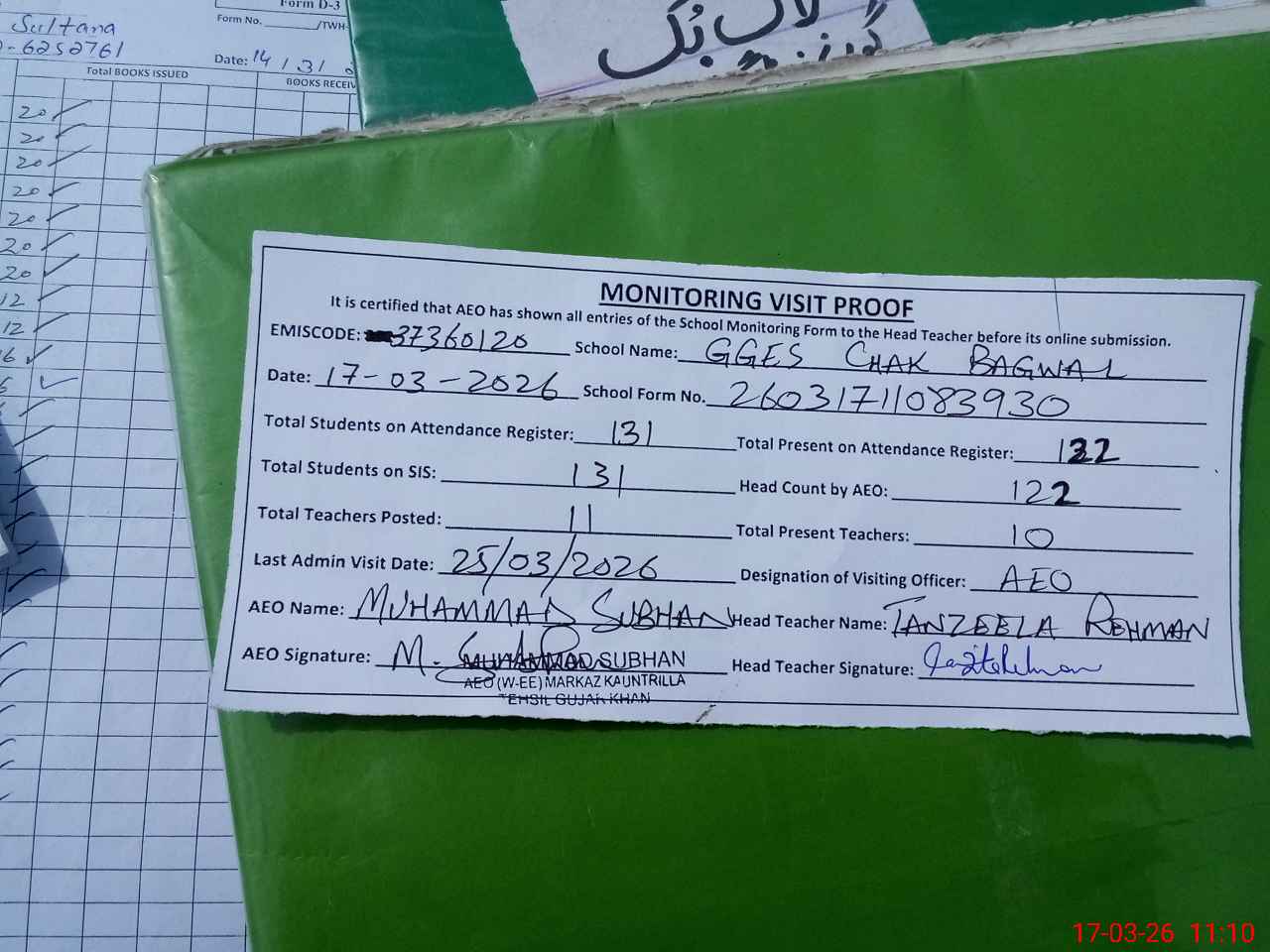 | EMIS Code: 37360120 | Name of School: GGES CHAK BAGWAL | |||