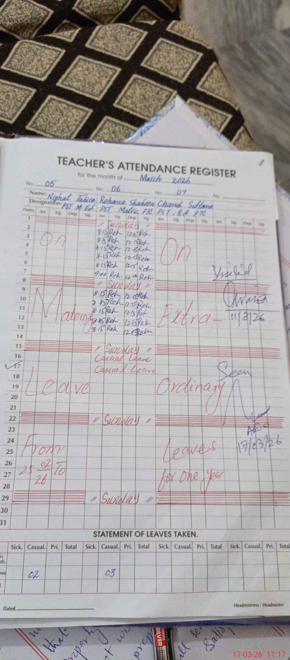 | 35**** | Ni**** Ta**** | PST | Regular | 0 | 0 | 0 | 0 | 0 | 0 | 0 | 0 | 0 | Maternity |
