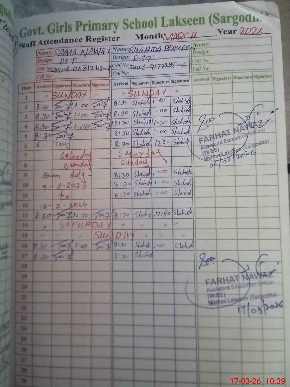 | Name: SA**** NA**** Designation: (School Headmaster's/Headmistress's) PST Phone/Cell Number: 03**** |
