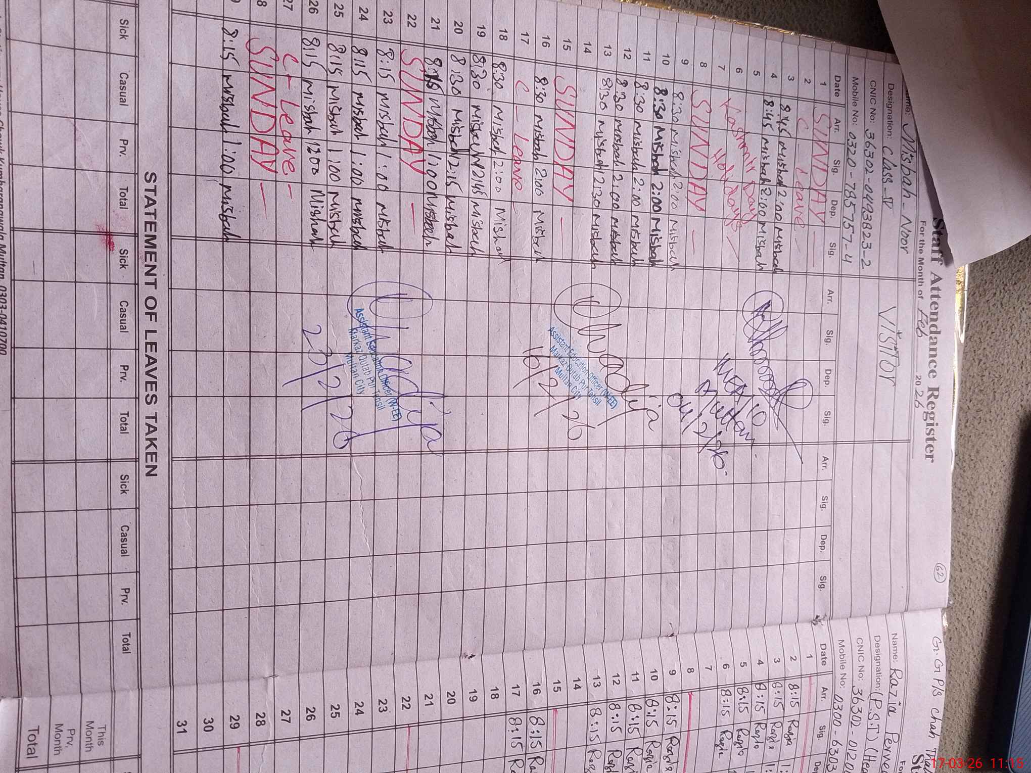 | 36**** | Af**** Ka**** | PST Arts | Regular | 0 | 0 | 0 | 0 | 0 | 0 | 0 | 0 | 0 | Casual |