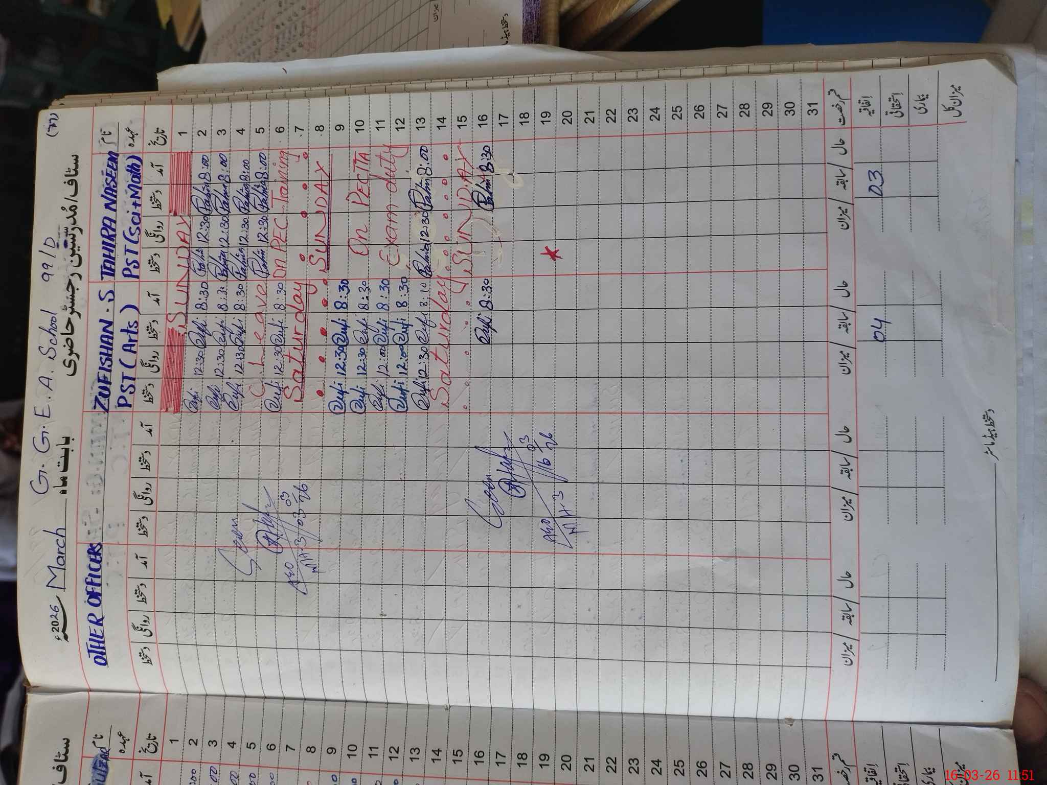 | Name: TA**** NA**** Designation: (School Headmaster's/Headmistress's) PST Phone/Cell Number: 03**** |