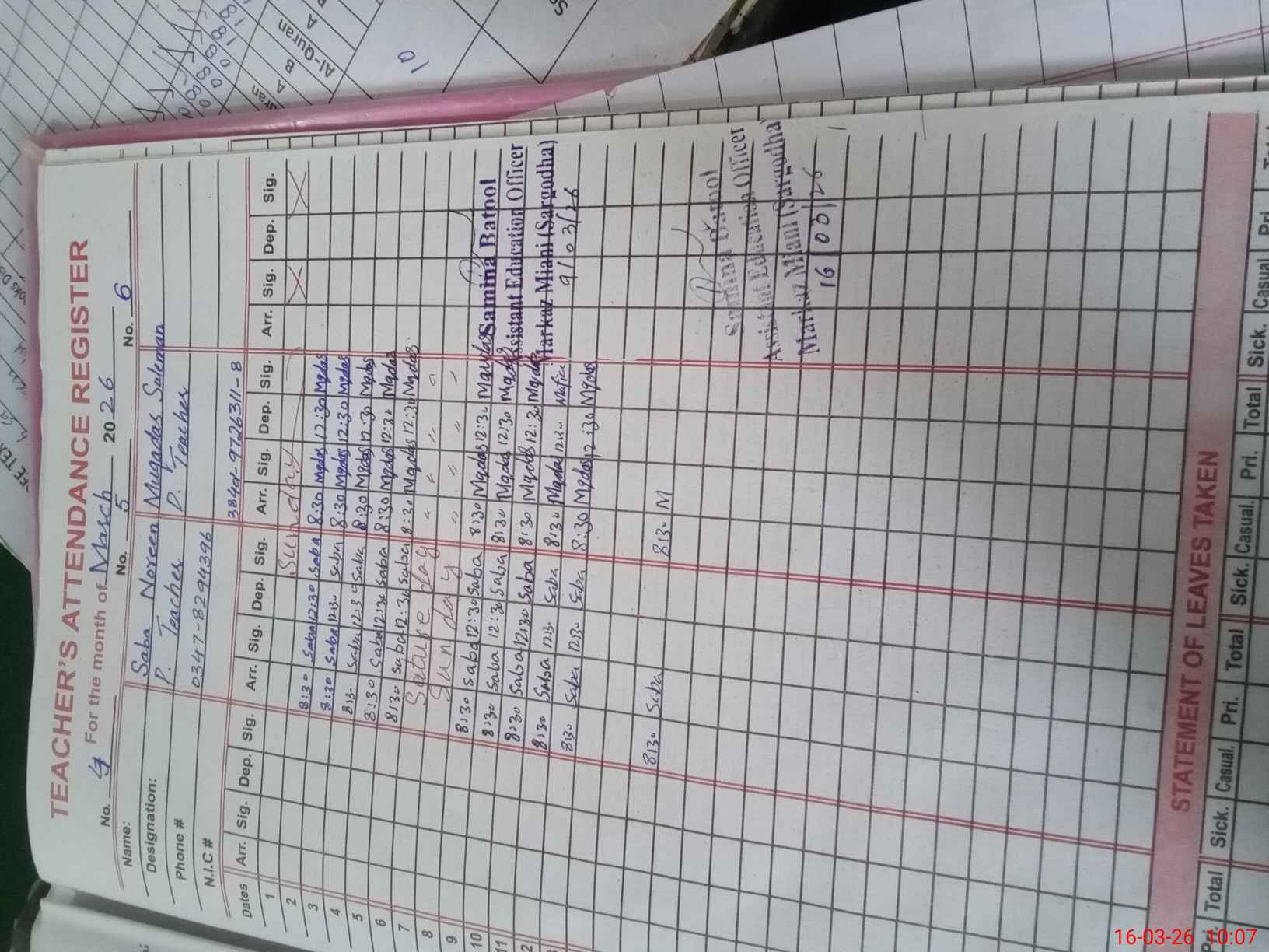 | Name: KA**** PA**** Designation: (School Headmaster's/Headmistress's) PST Phone/Cell Number: 03**** |
