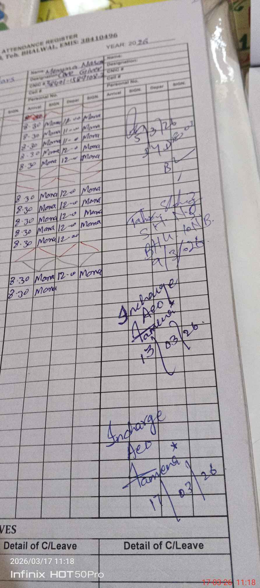 | Attendance Register | Head Teacher | MEA with School | Visit Proof |