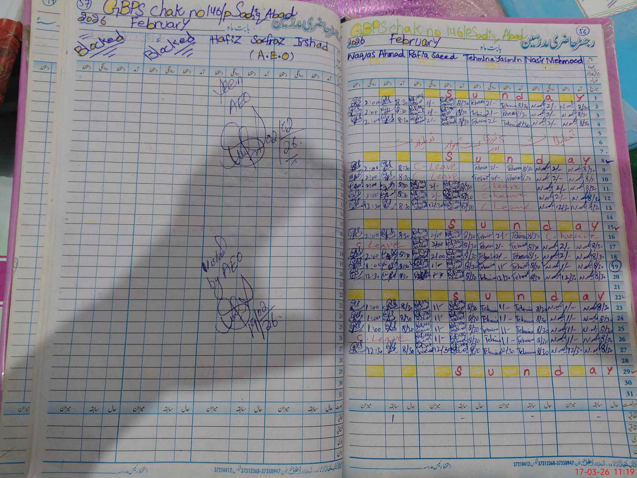 | CNIC | Full Name | Designation | R/C | Absence During Last Calender Month |