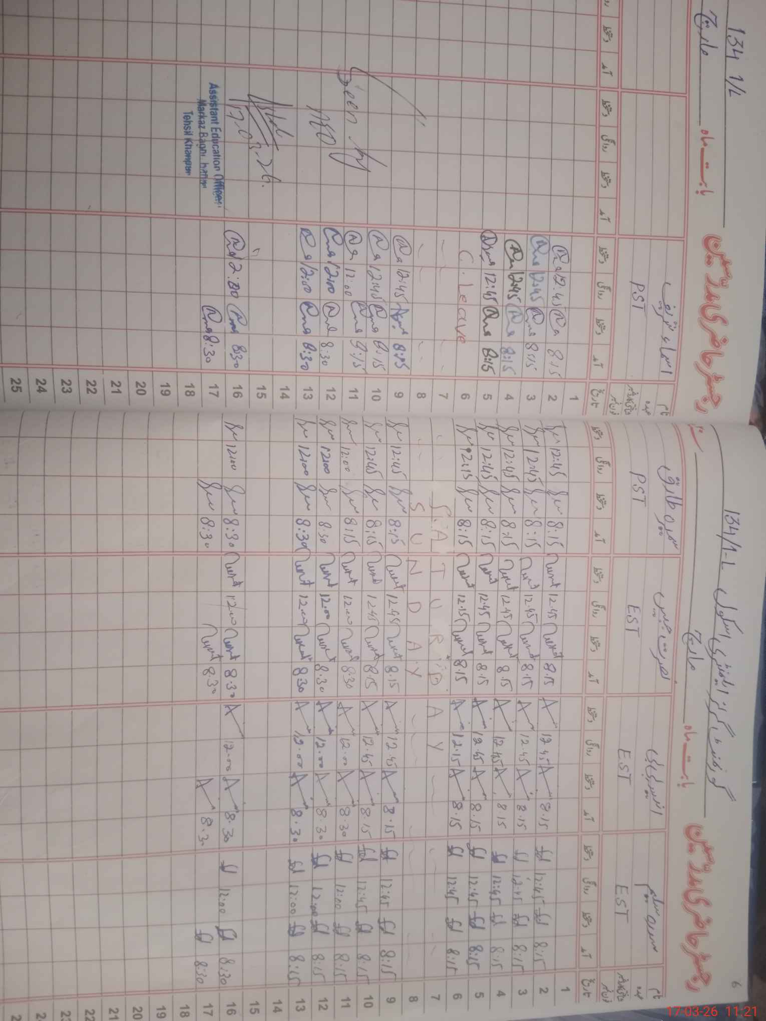 | CNIC | Full Name | Designation | R/C | Absence During Last Calender Month |