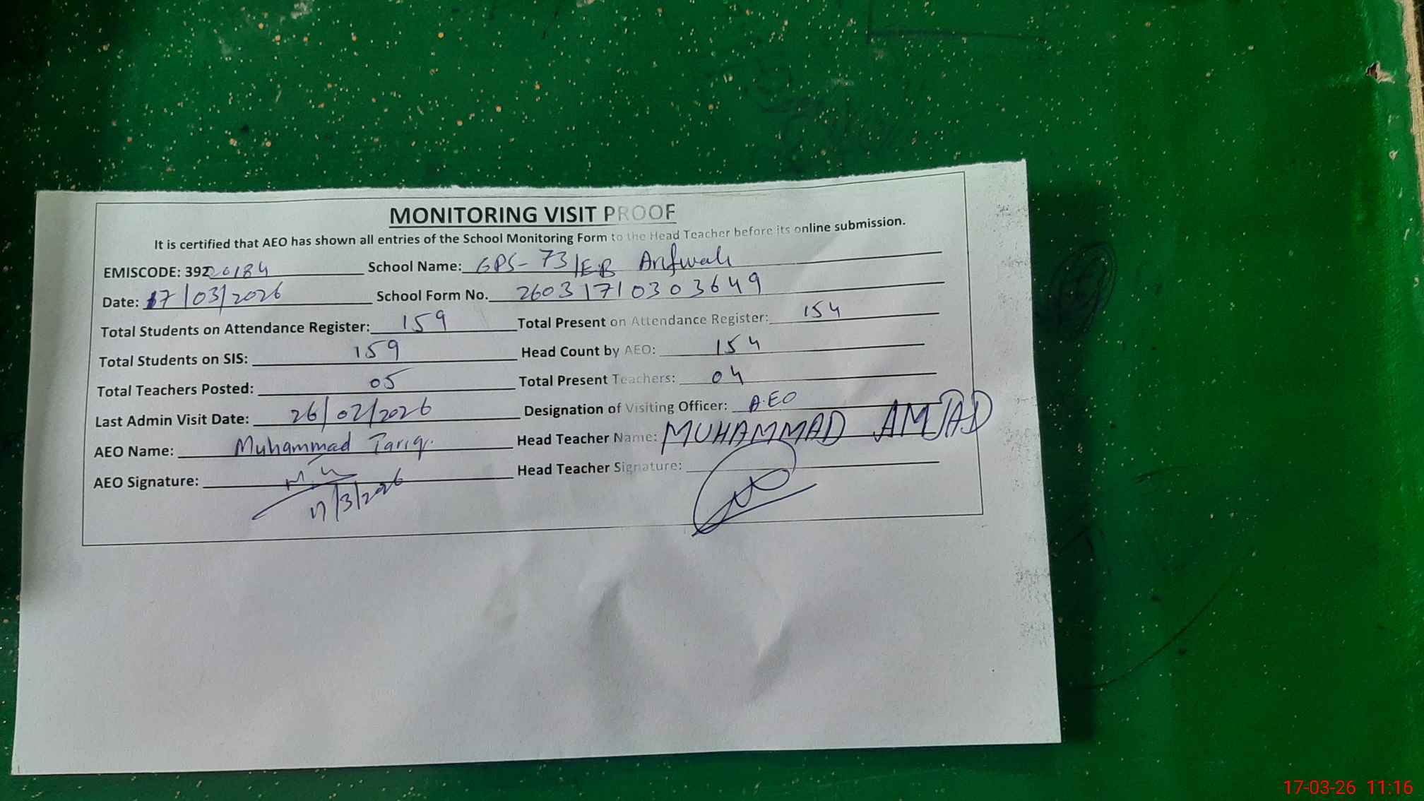 | EMIS Code: 39220184 | Name of School: GPS 73 EB P/O CHAK NO 75/EB | |||