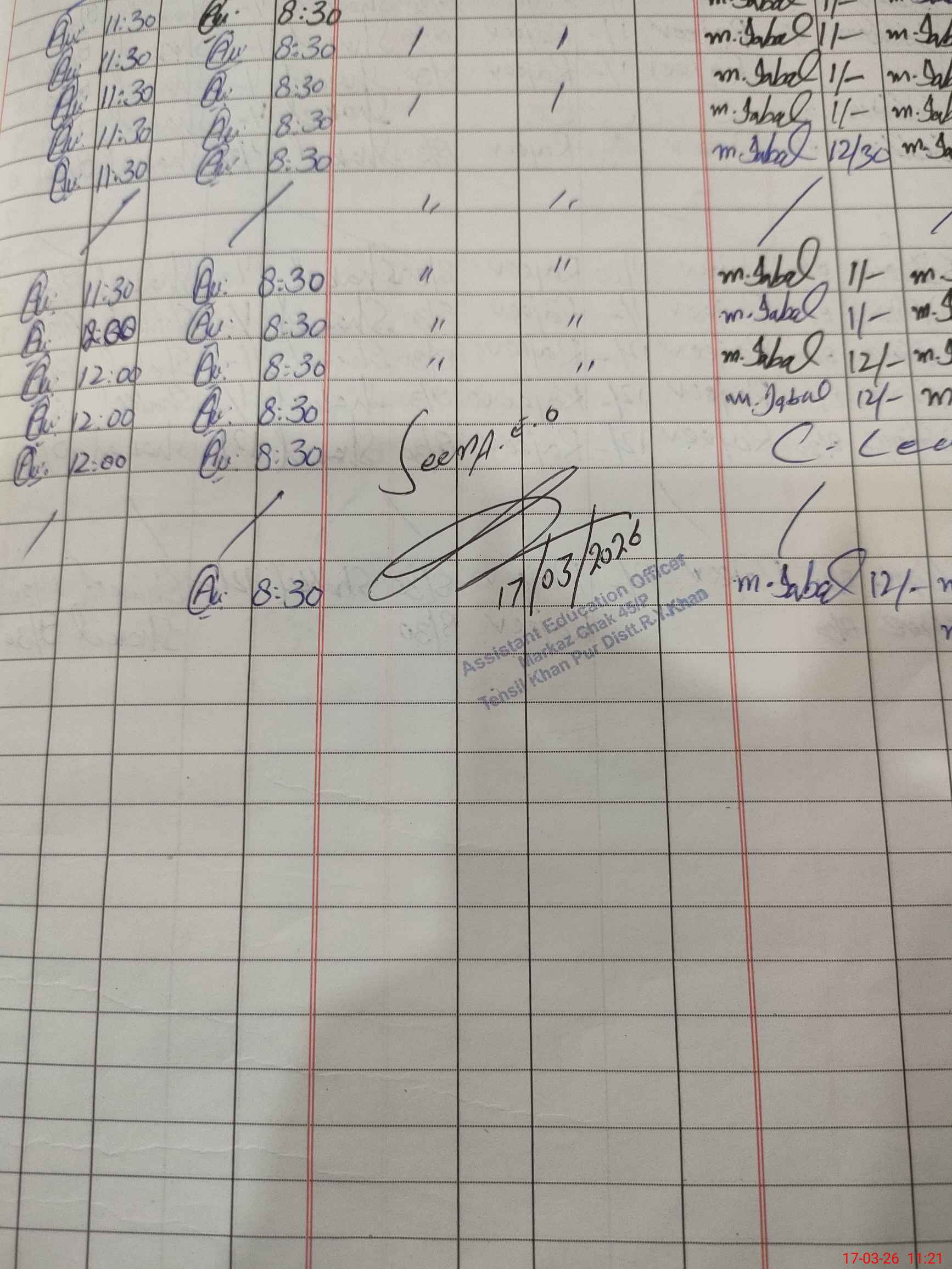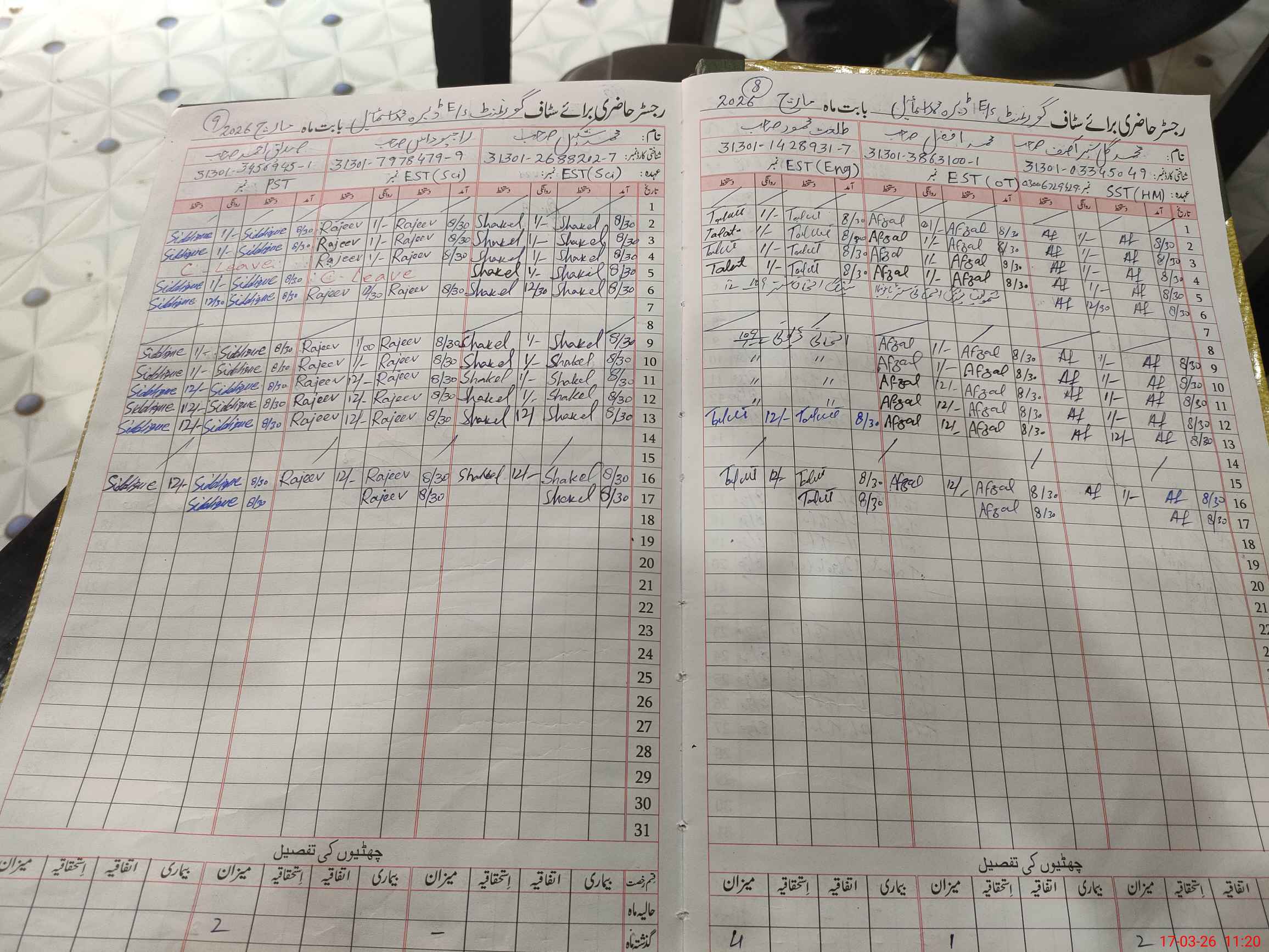 | CNIC | Full Name | Designation | R/C | Absence during last cal. month |