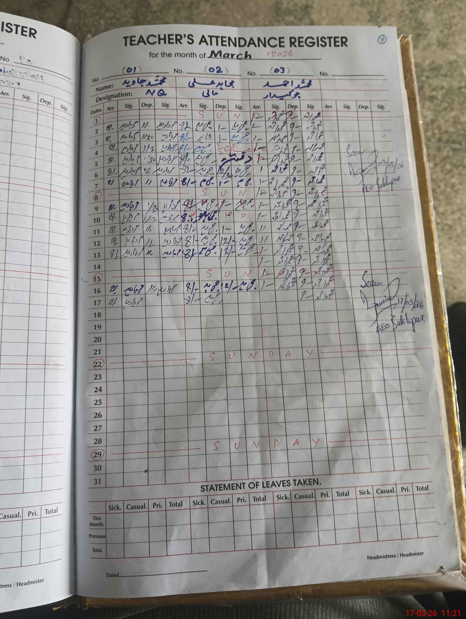 | Remarks (Use Separate Page if Required): Javid Nawaz AEO Sukhpur | |||||