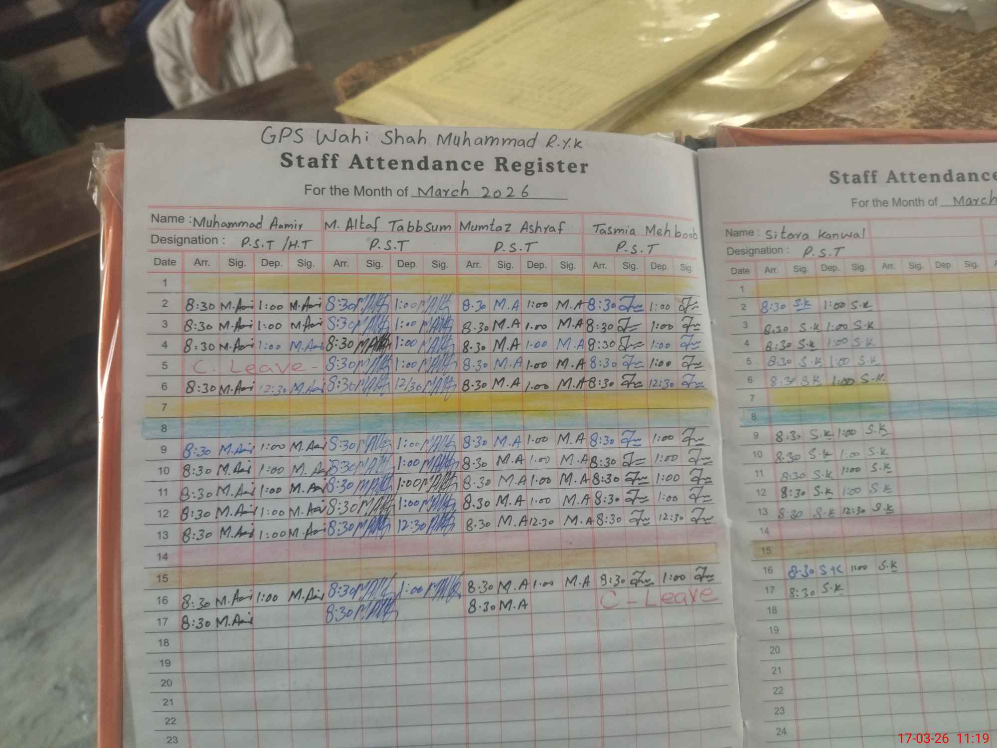 | CNIC | Full Name | Designation | R/C | Absence During Last Calender Month |