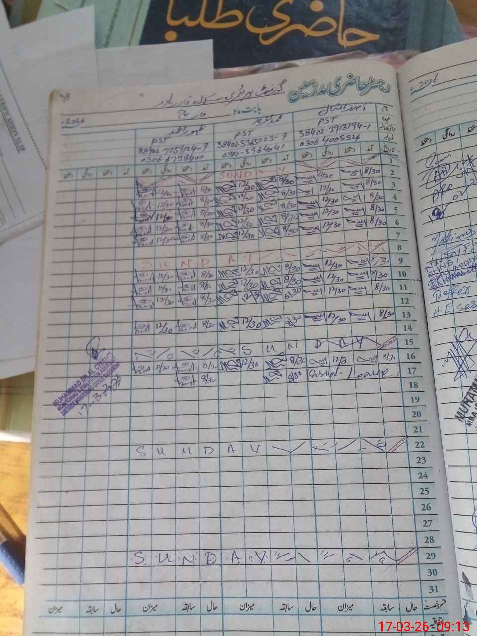 | Name: MU**** NA**** Designation: (School Headmaster's/Headmistress's) PST Phone/Cell Number: 03**** |