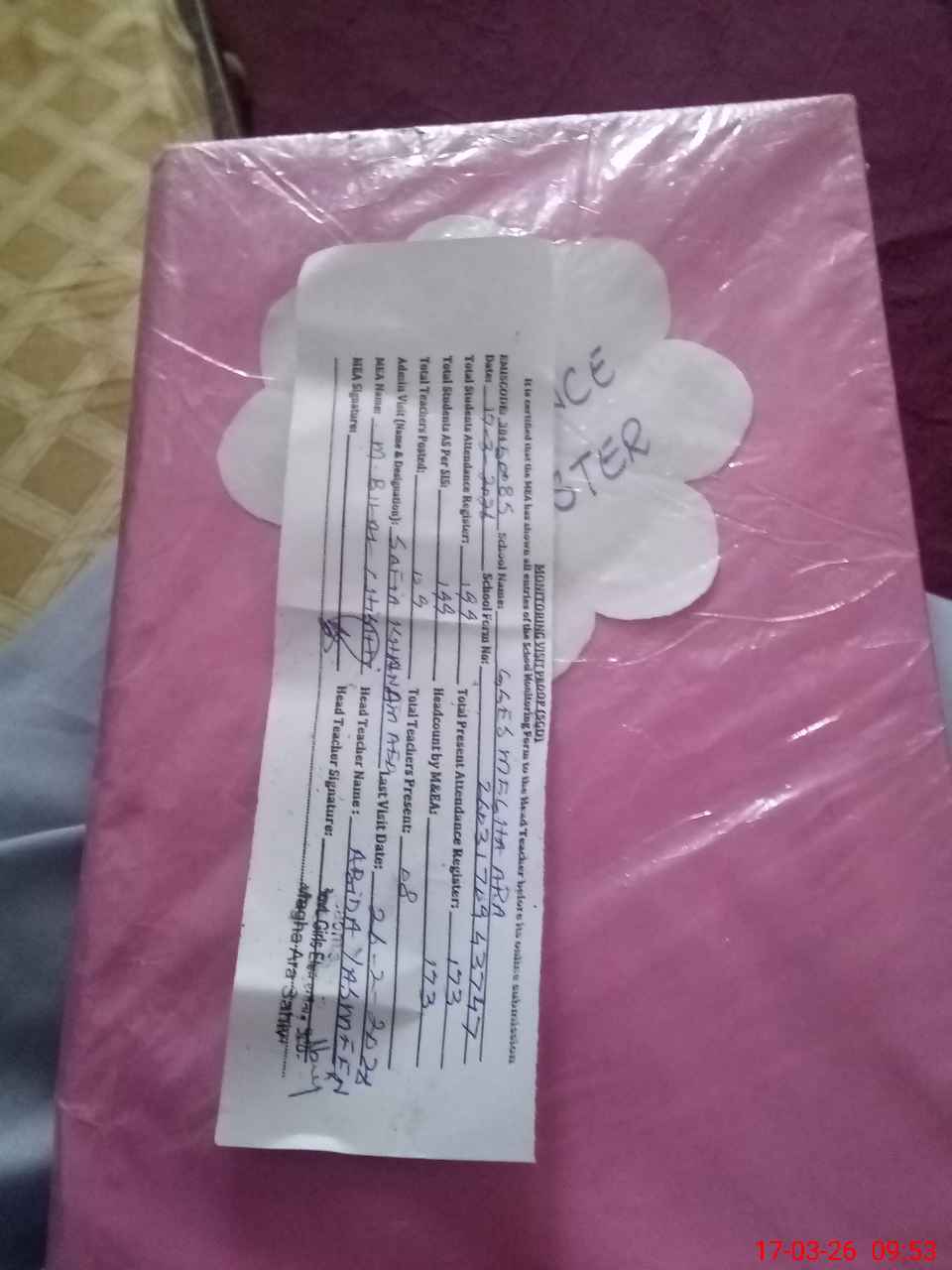 | Attendance Register | Head Teacher | MEA with School | Visit Proof |