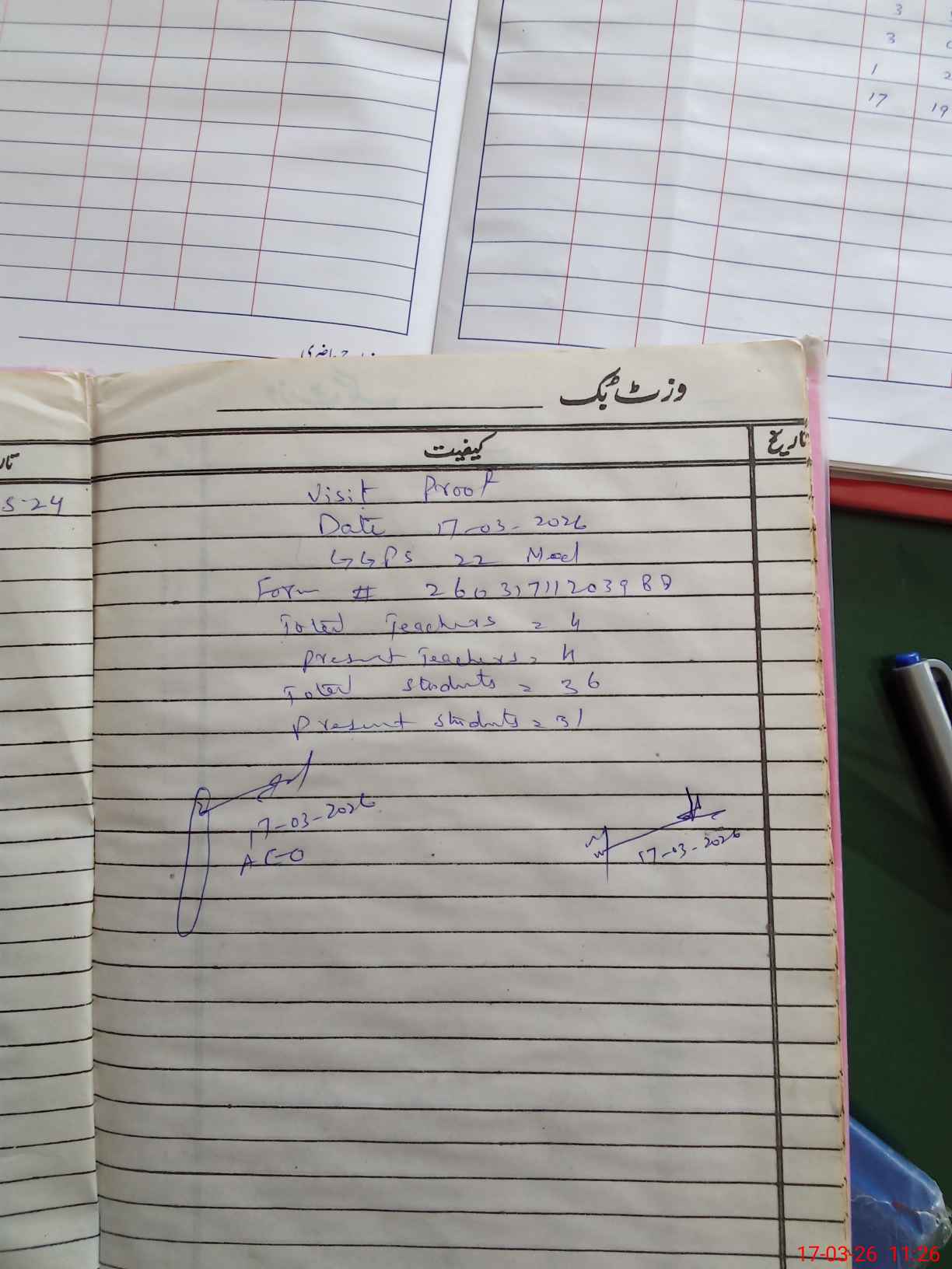 | Attendance Register | Head Teacher | MEA with School | Visit Proof |