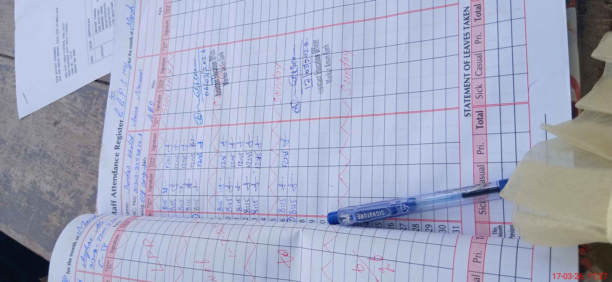 | Attendance Register | Head Teacher | MEA with School | Visit Proof |