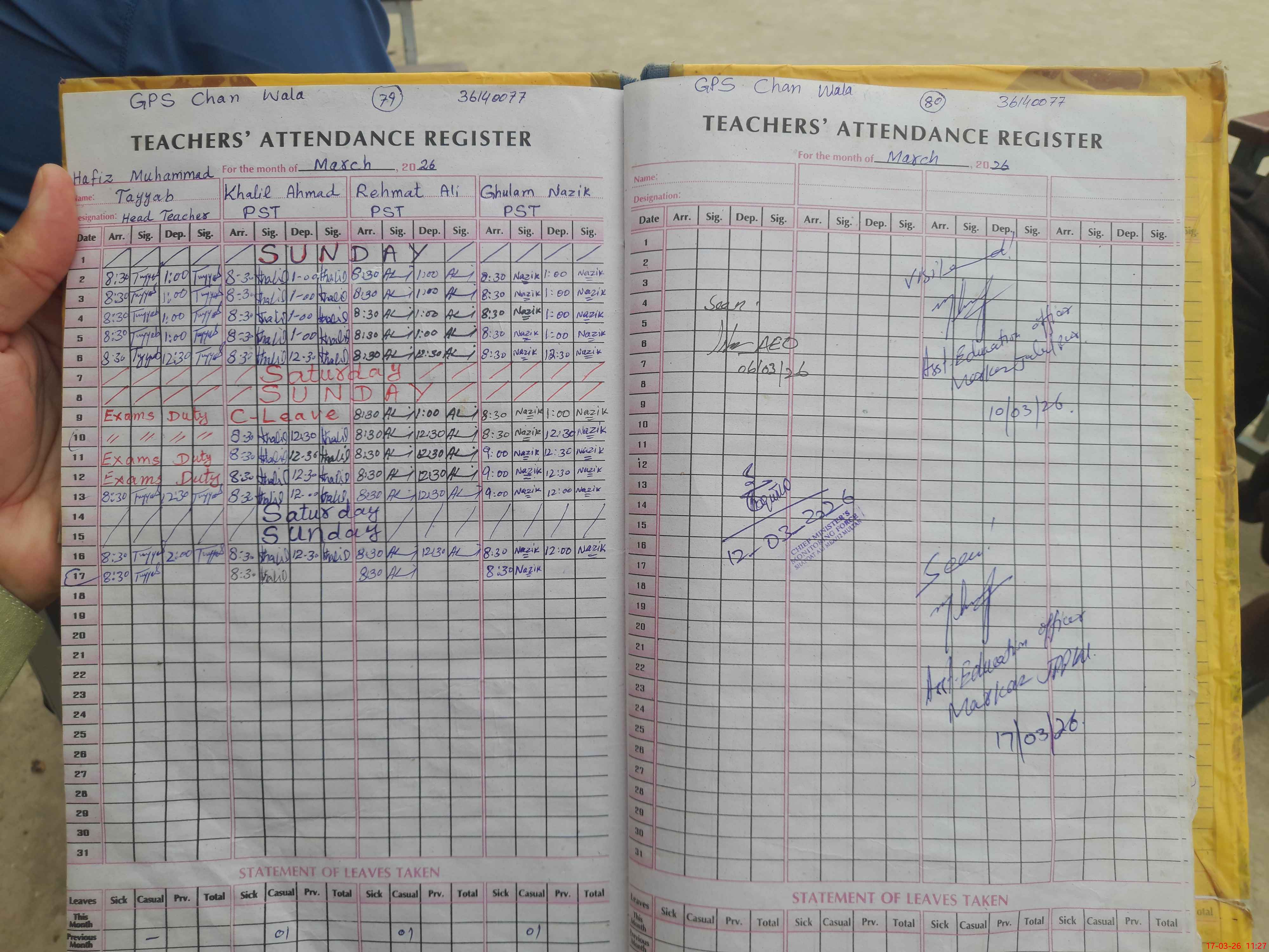 | Attendance Register | Head Teacher | MEA with School | Visit Proof |