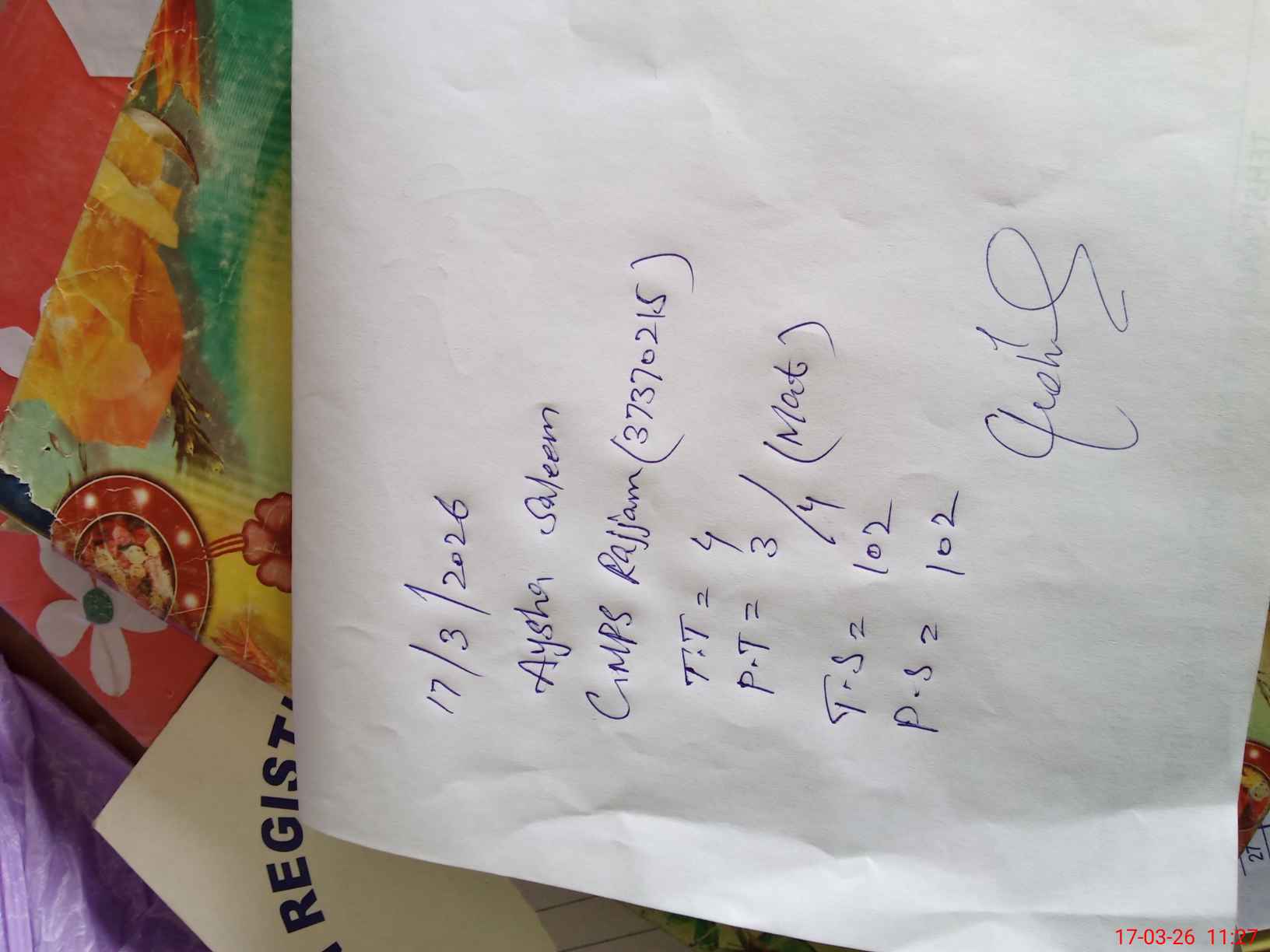 | Name: Na**** Bi**** Designation: (School Headmaster's/Headmistress's) PST Phone/Cell Number: 03**** |