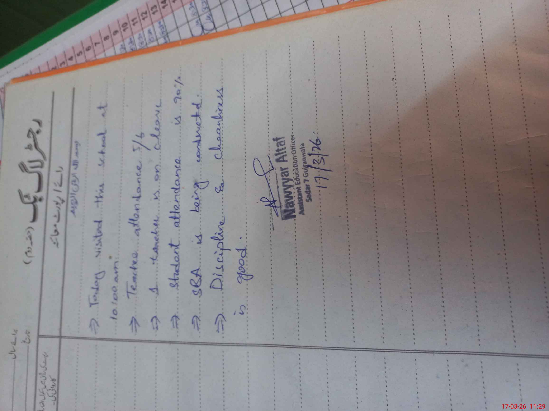 | Attendance Register | Head Teacher | MEA with School | Visit Proof |
