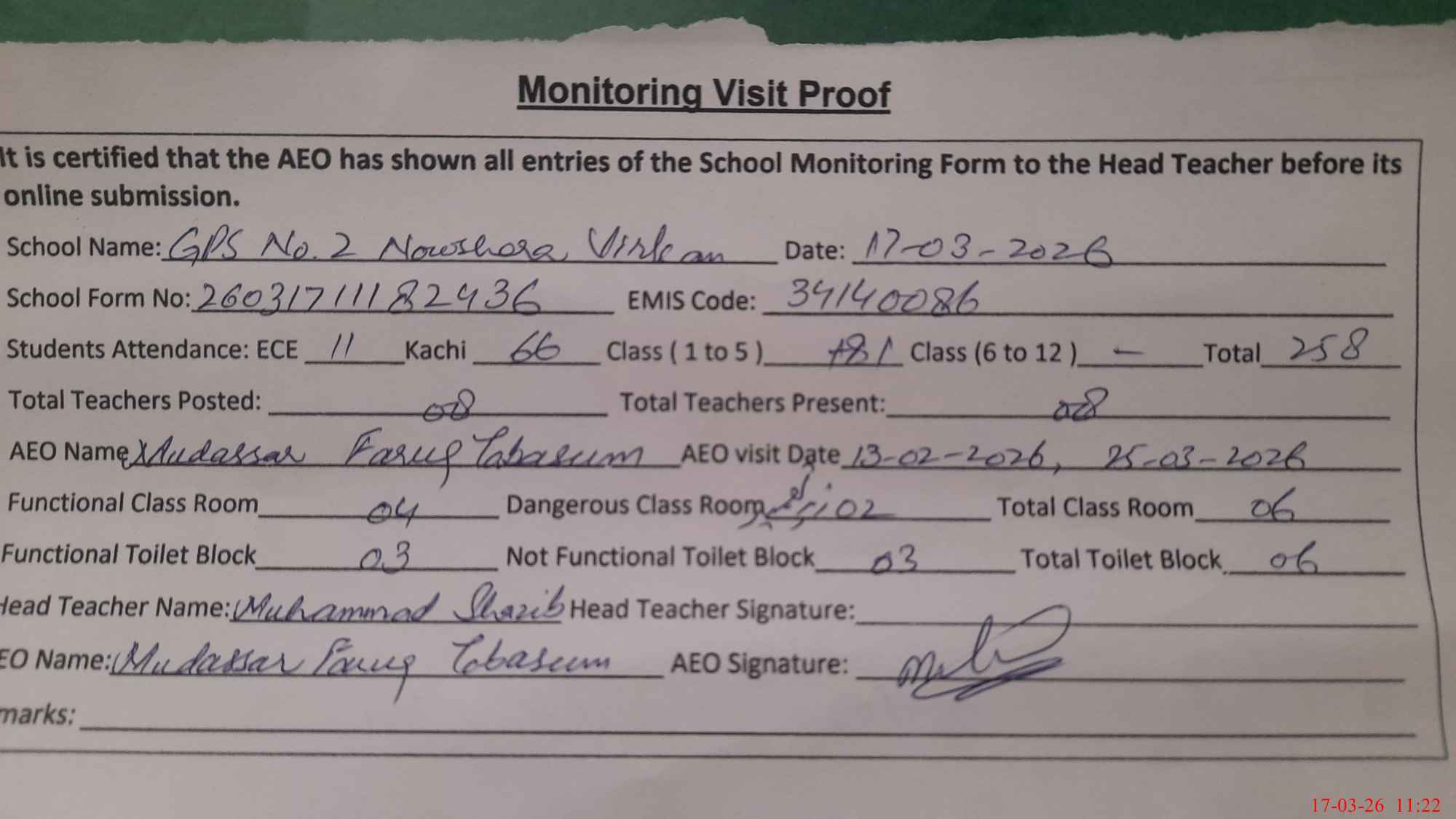 | EMIS Code: 34140086 | Name of School: GPS NOWSHERA VIRKAN NO.2 | |||