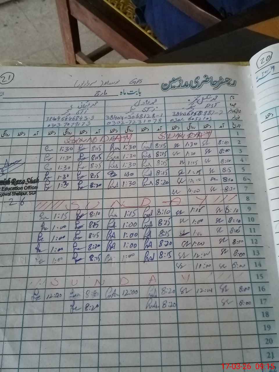 | Name: Mu**** Sh**** Ha**** Designation: (School Headmaster's/Headmistress's) PST (Sci-Maths) Phone/Cell Number: 03**** |
