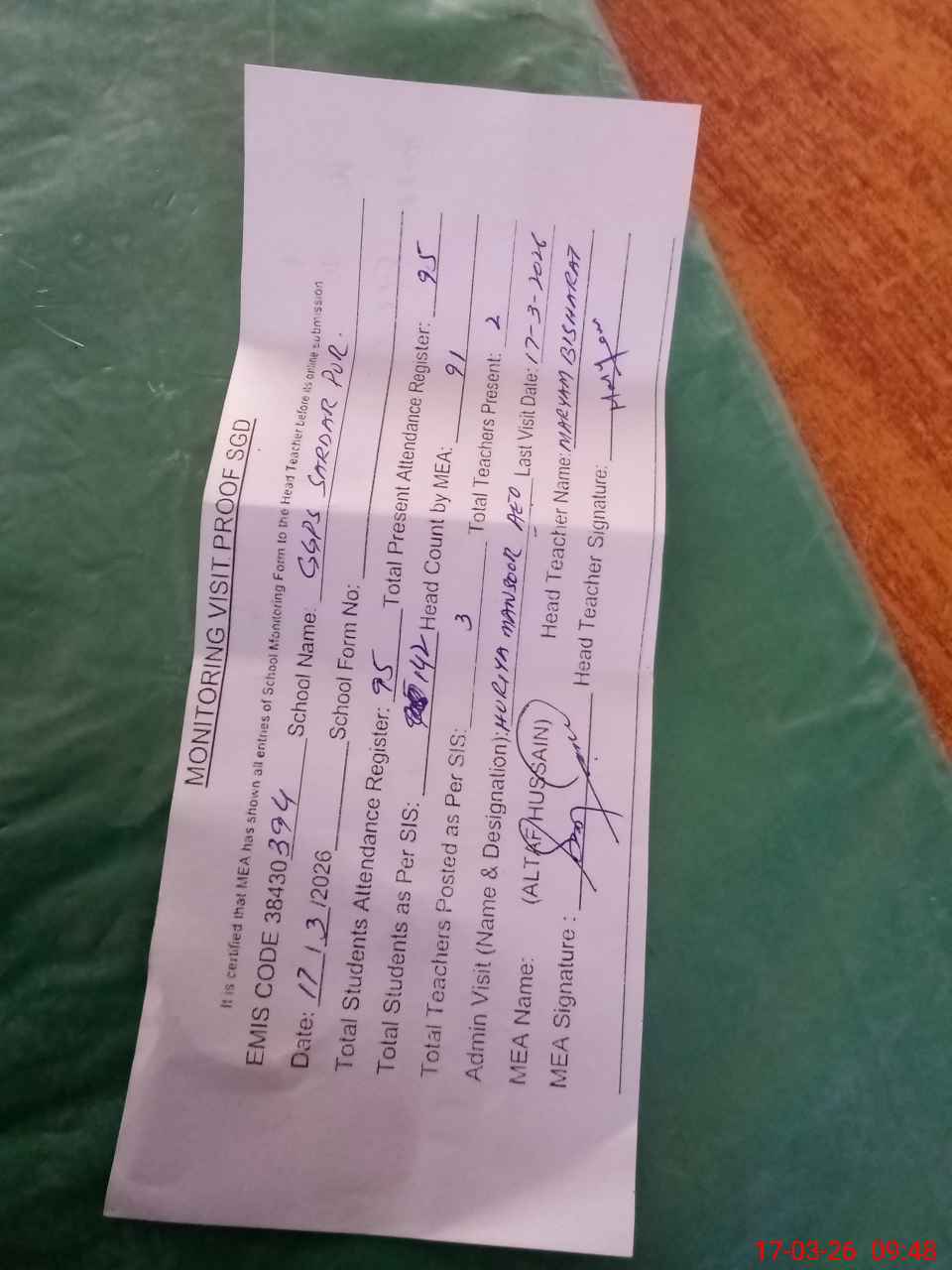 | EMIS Code: 38430394 | Name of School: GGPS SARDAR PUR | |||