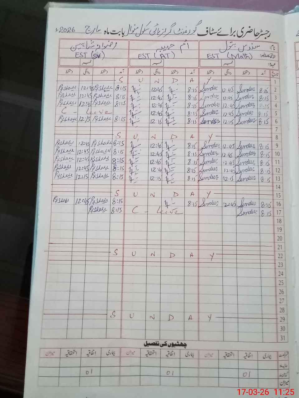 | Remarks (Use Separate Page if Required): ece kachi and 9 and 10 class was on off from school | |||||