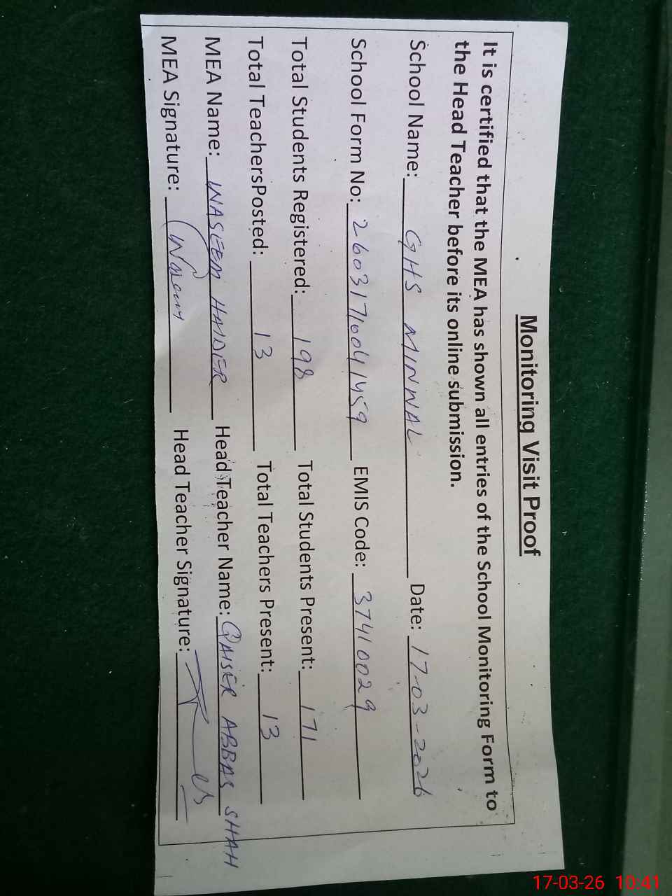 | EMIS Code: 37410029 | Name of School: GHS MINWAL | |||
