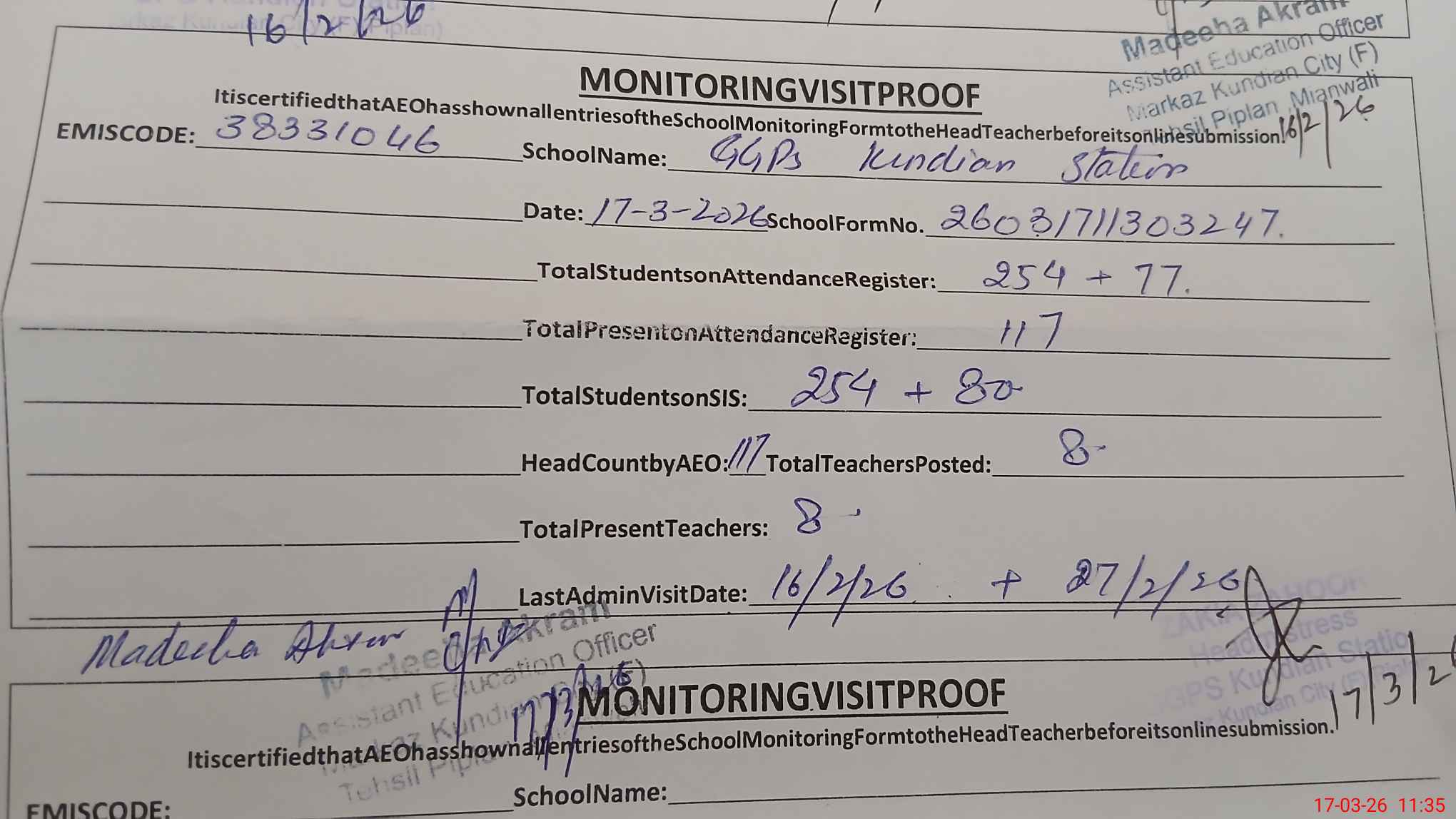 | EMIS Code: 38331046 | Name of School: GGPS KUNDIAN STATION | |||