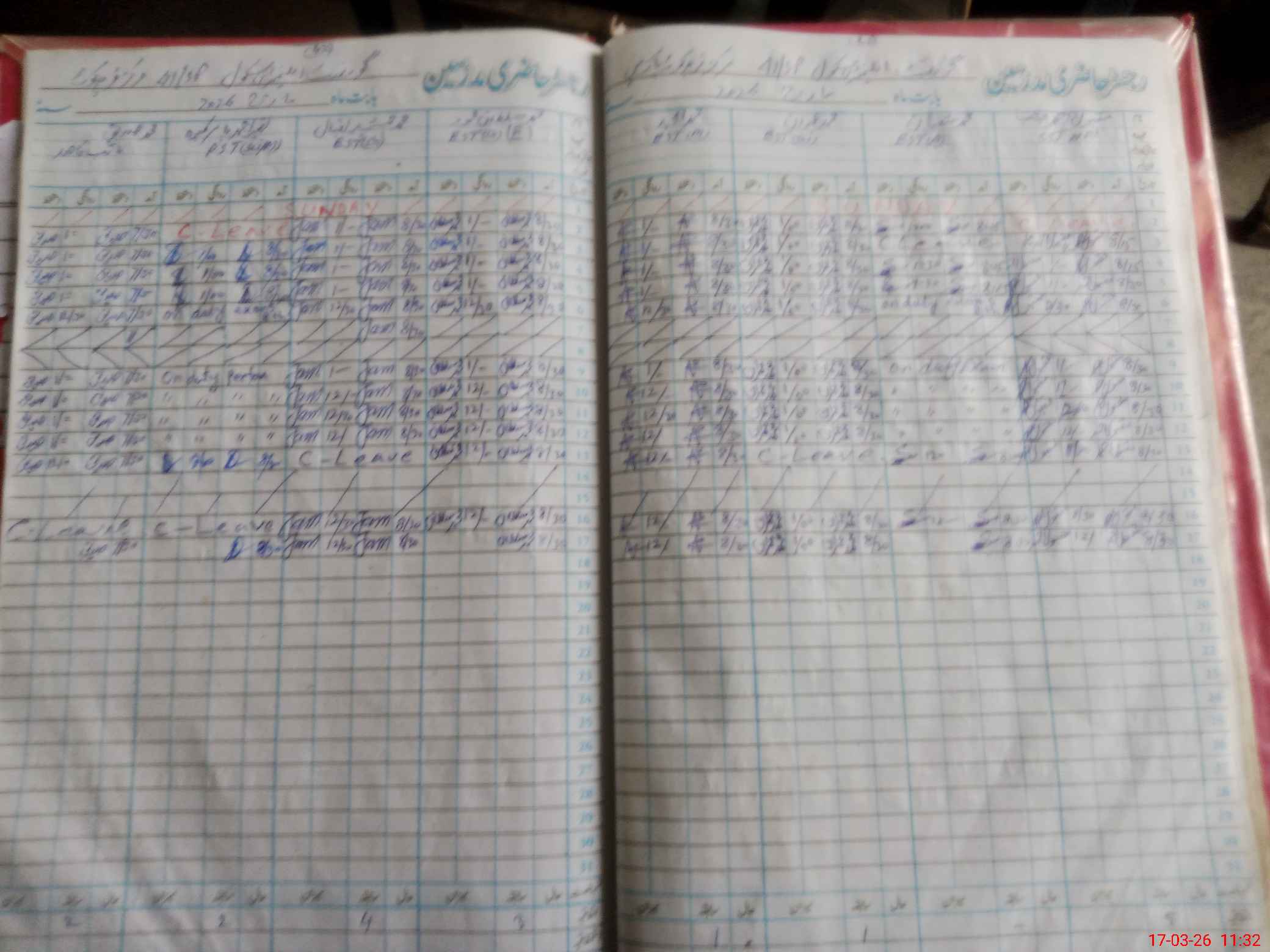 | CNIC | Full Name | Designation | R/C | Absence During Last Calender Month |