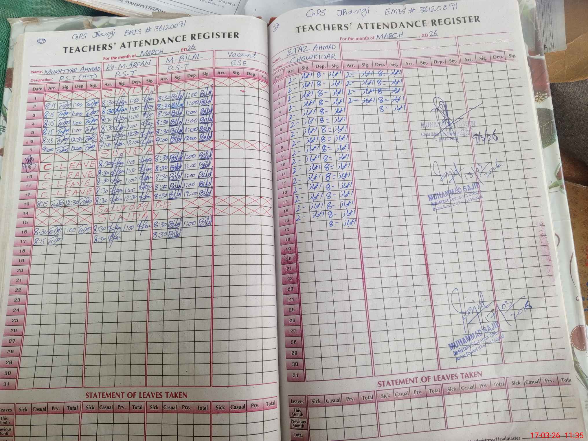 | Name: MU**** AH**** Designation: (School Headmaster's/Headmistress's) PST/PTC/JV Phone/Cell Number: 03**** |