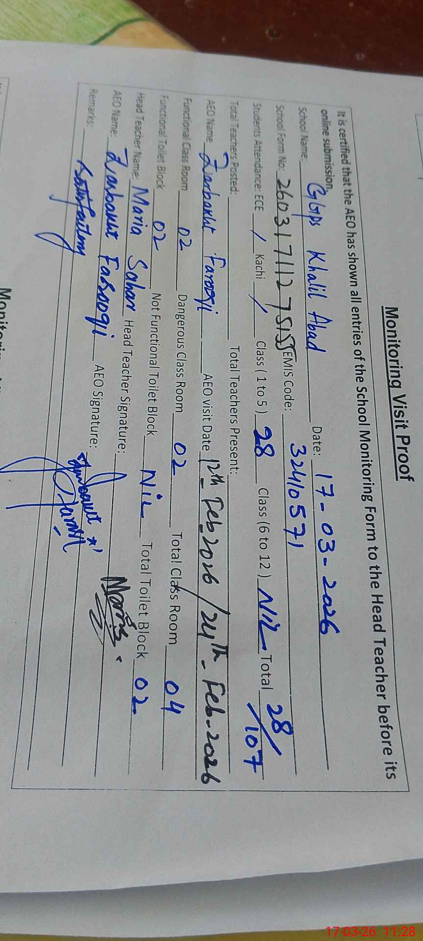 | EMIS Code: 32410571 | Name of School: GGPS KHALIL ABAD | |||