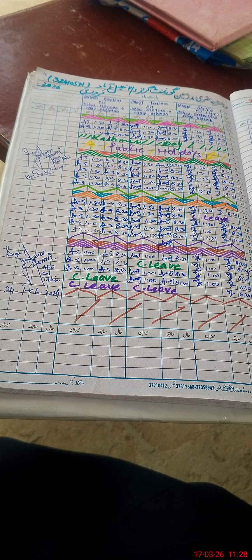| Leave | Duty | Absent | Maternity | Medical | Ex- Pak |