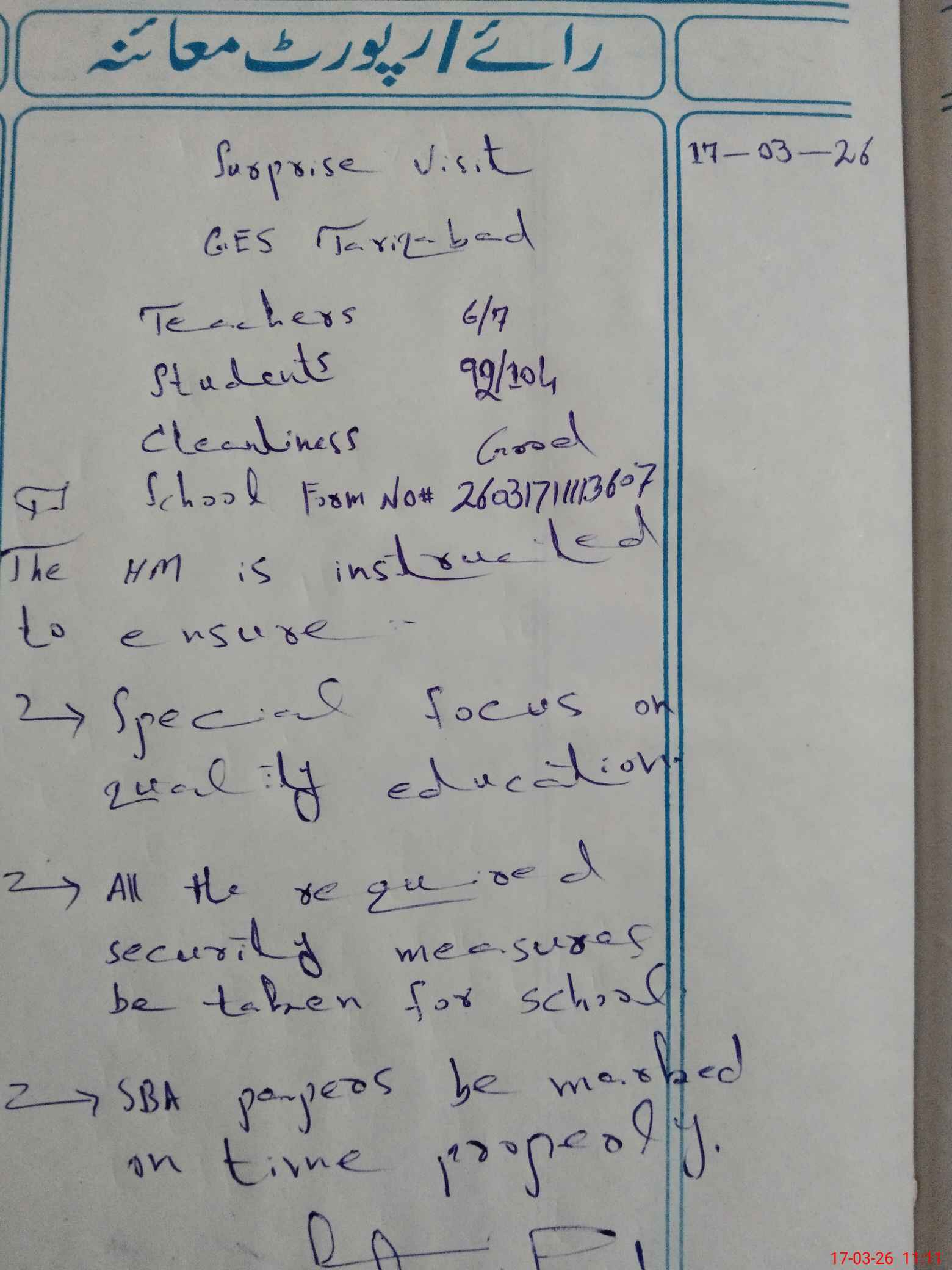 | EMIS Code: 39320094 | Name of School: GES TARIQ ABAD | |||