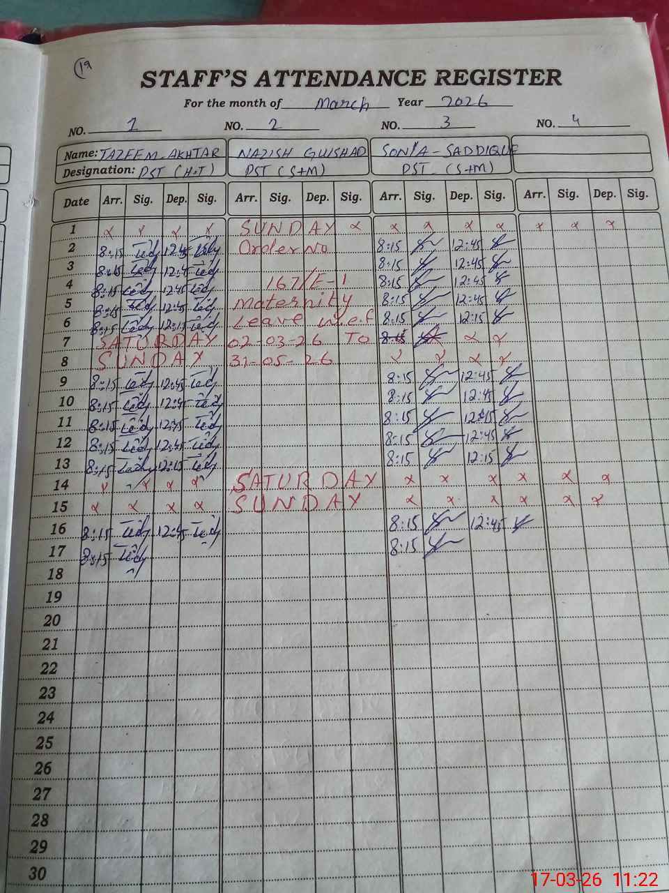 | 37**** | Na**** Gu**** | PST Science/Maths | Regular | 0 | 0 | 0 | 0 | 0 | 0 | 0 | 0 | 0 | Maternity |